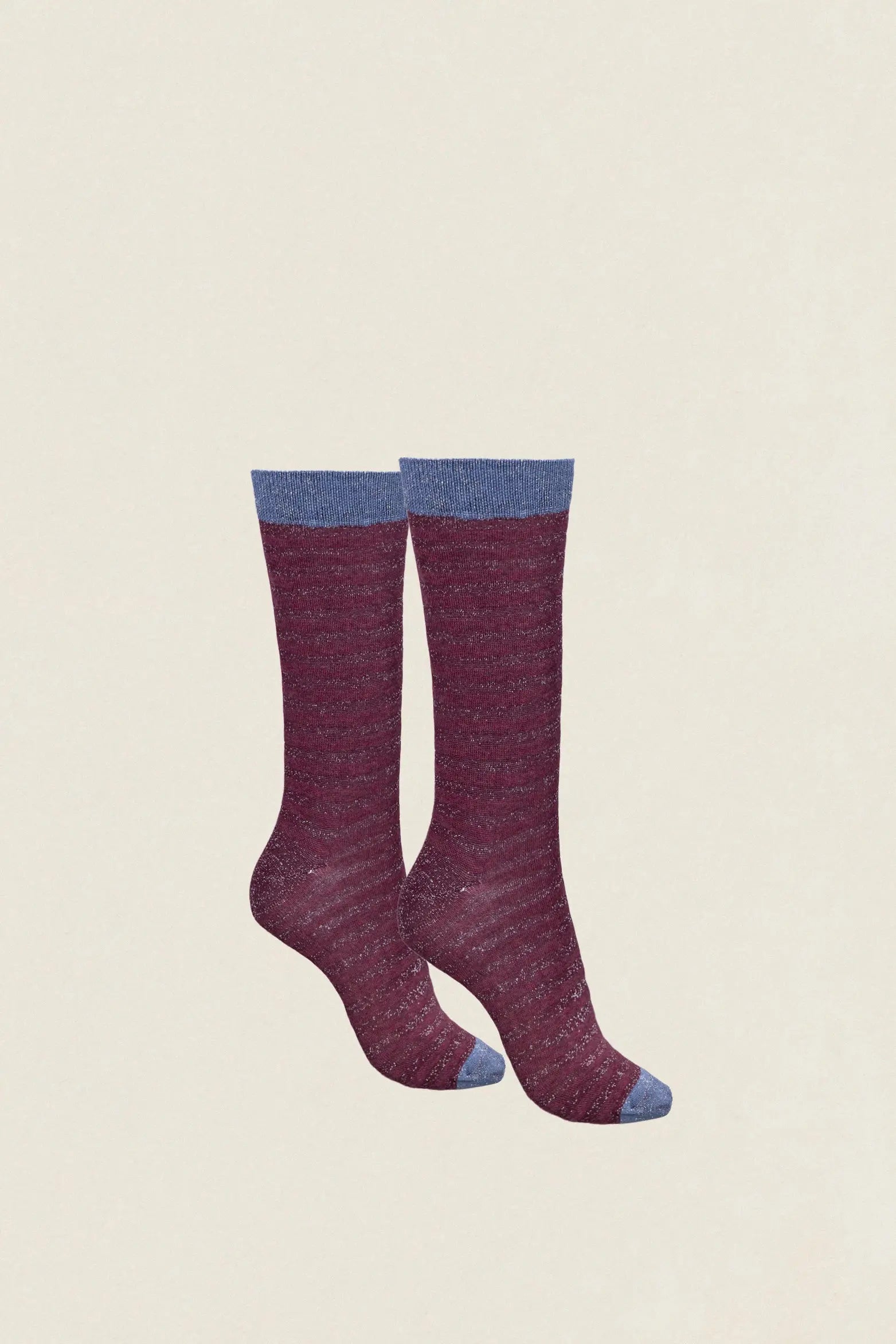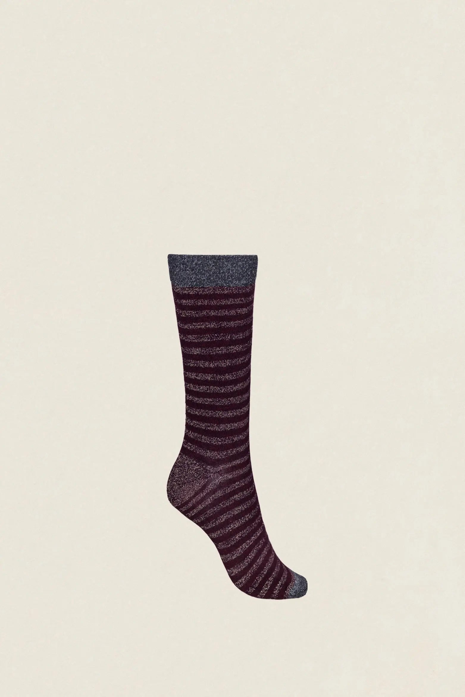 Calcetin purpurina caña corta PCCR09 Rayas Vino Oscuro - Vino