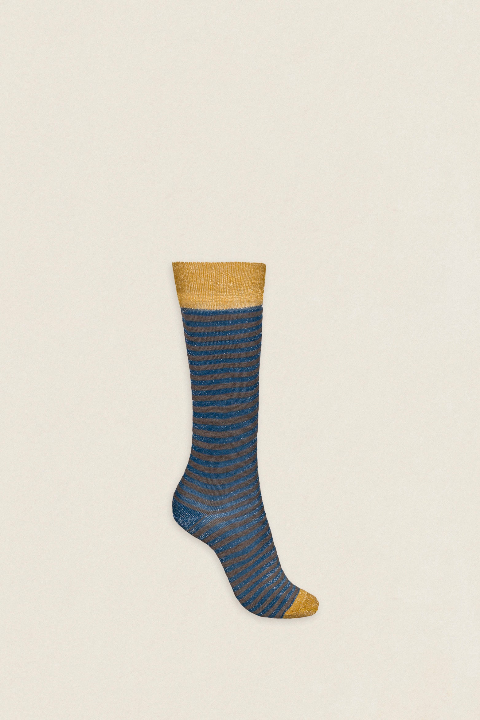 Calcetin purpurina caña corta PCCR02 rayas Marino - Kaki