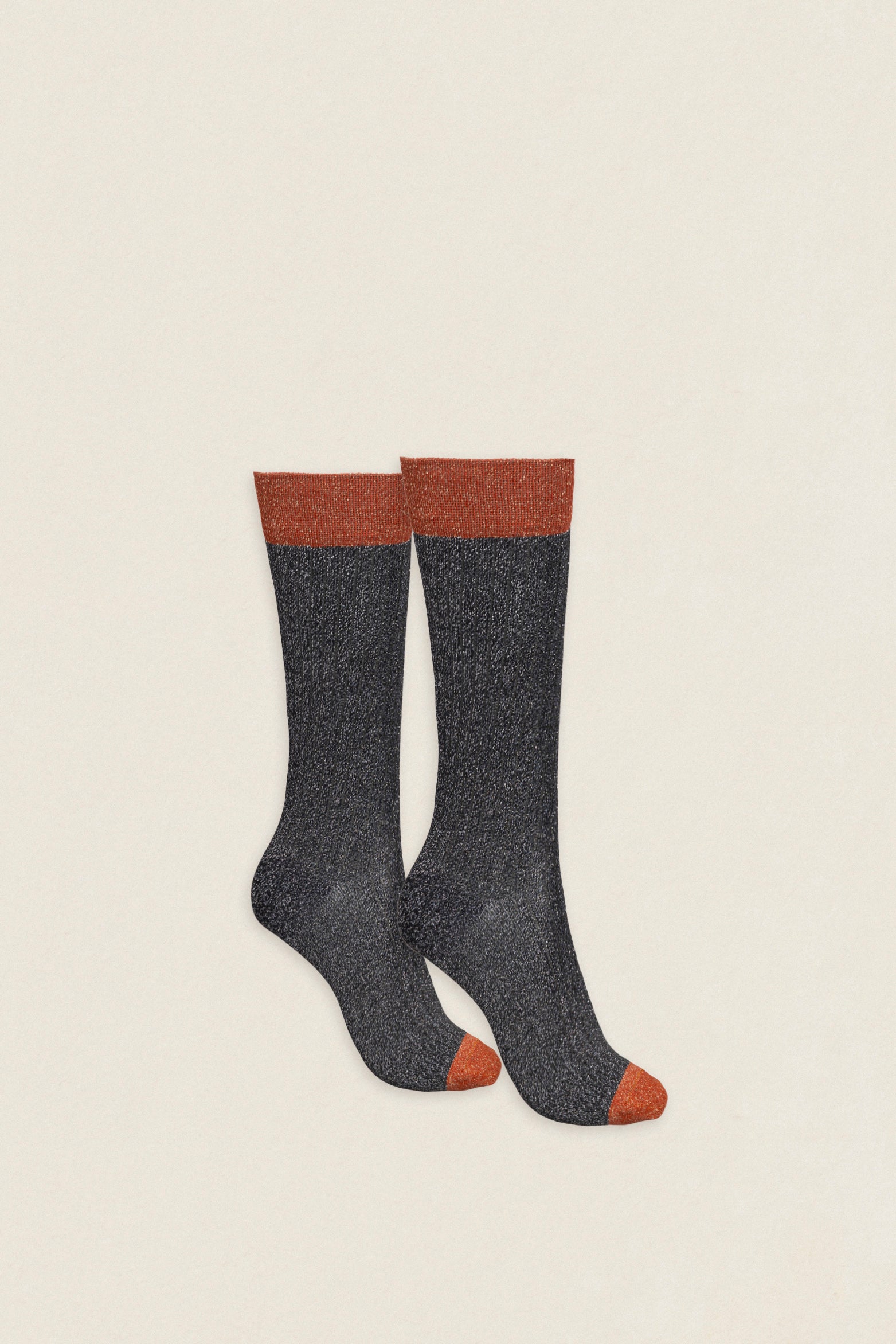 Calcetin purpurina caña corta PCCR04 rayas Antracita - Tostado