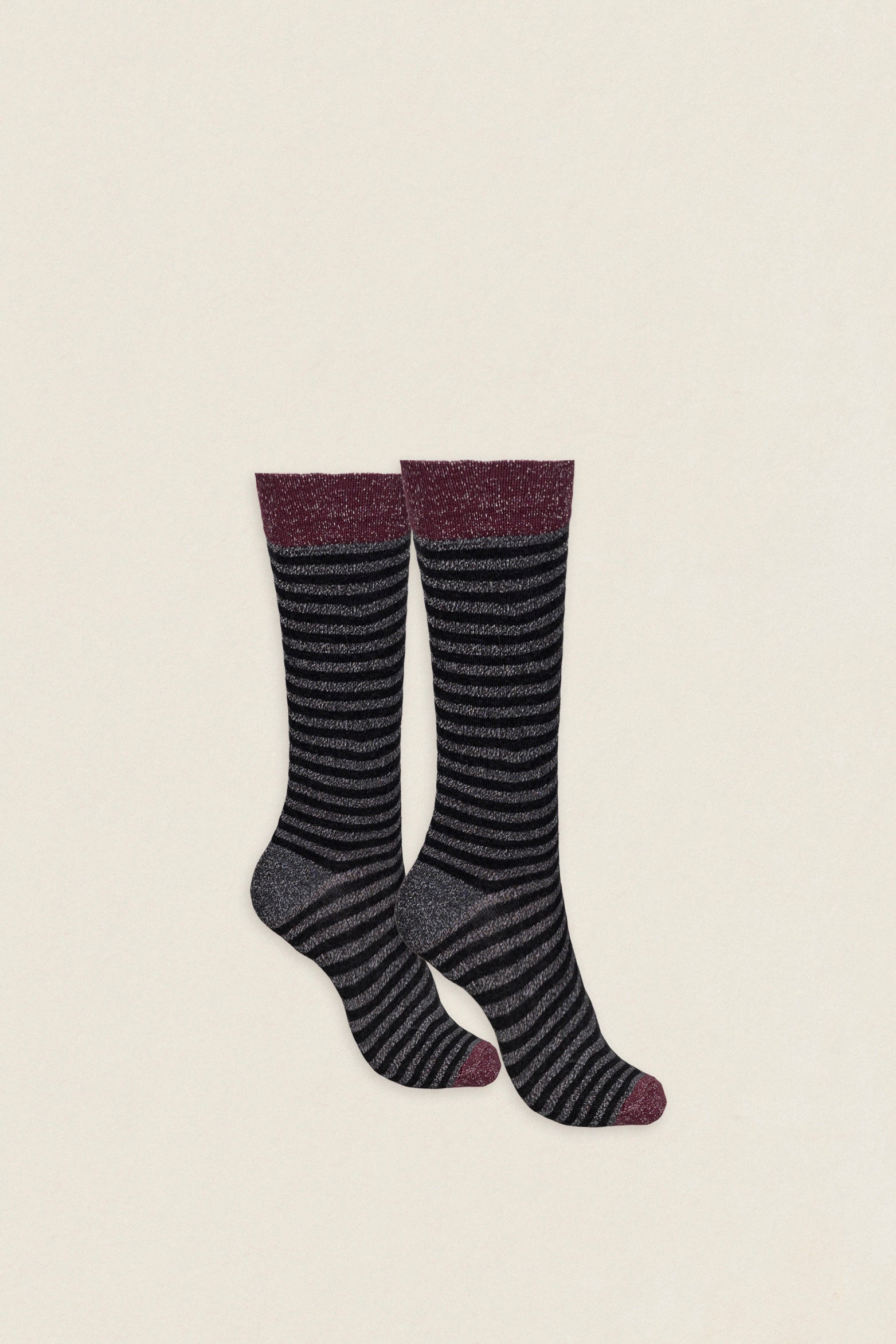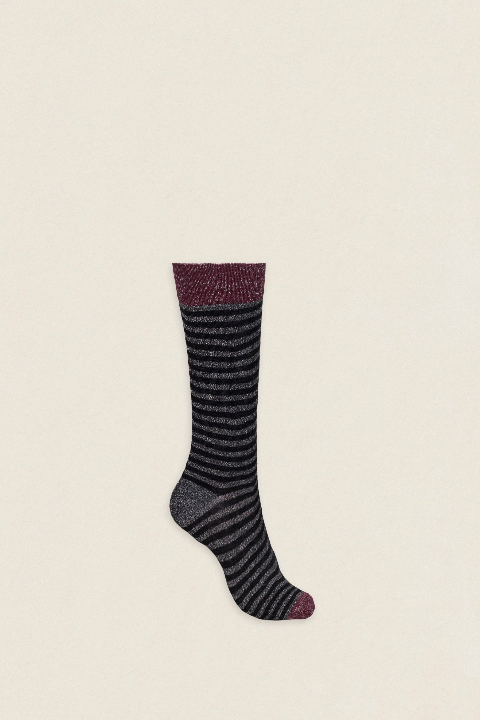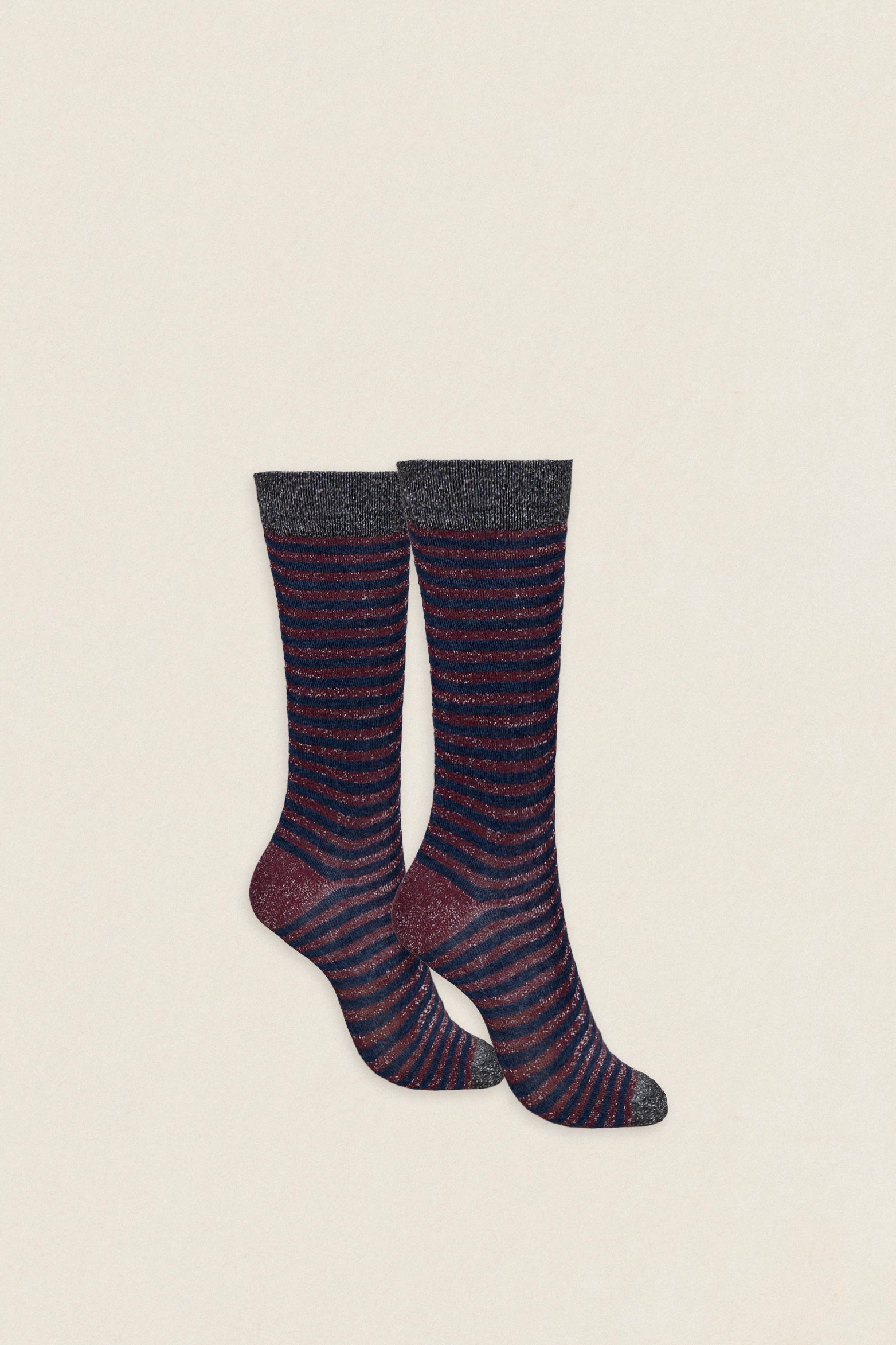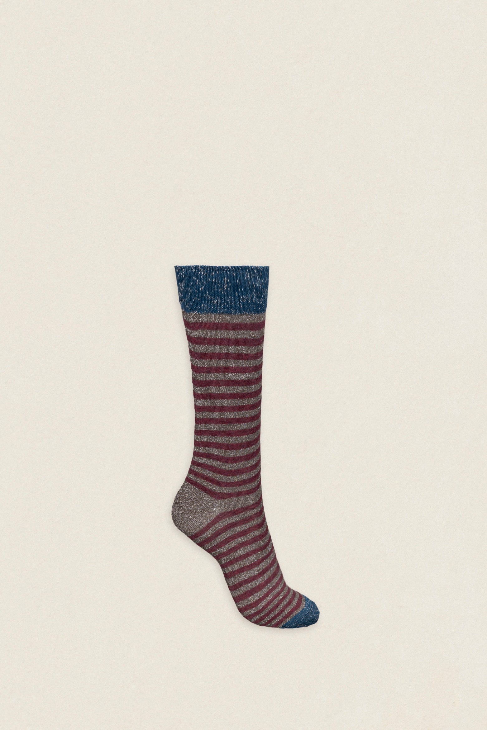 Calcetin purpurina caña corta PCCR05 rayas Marino - Vino