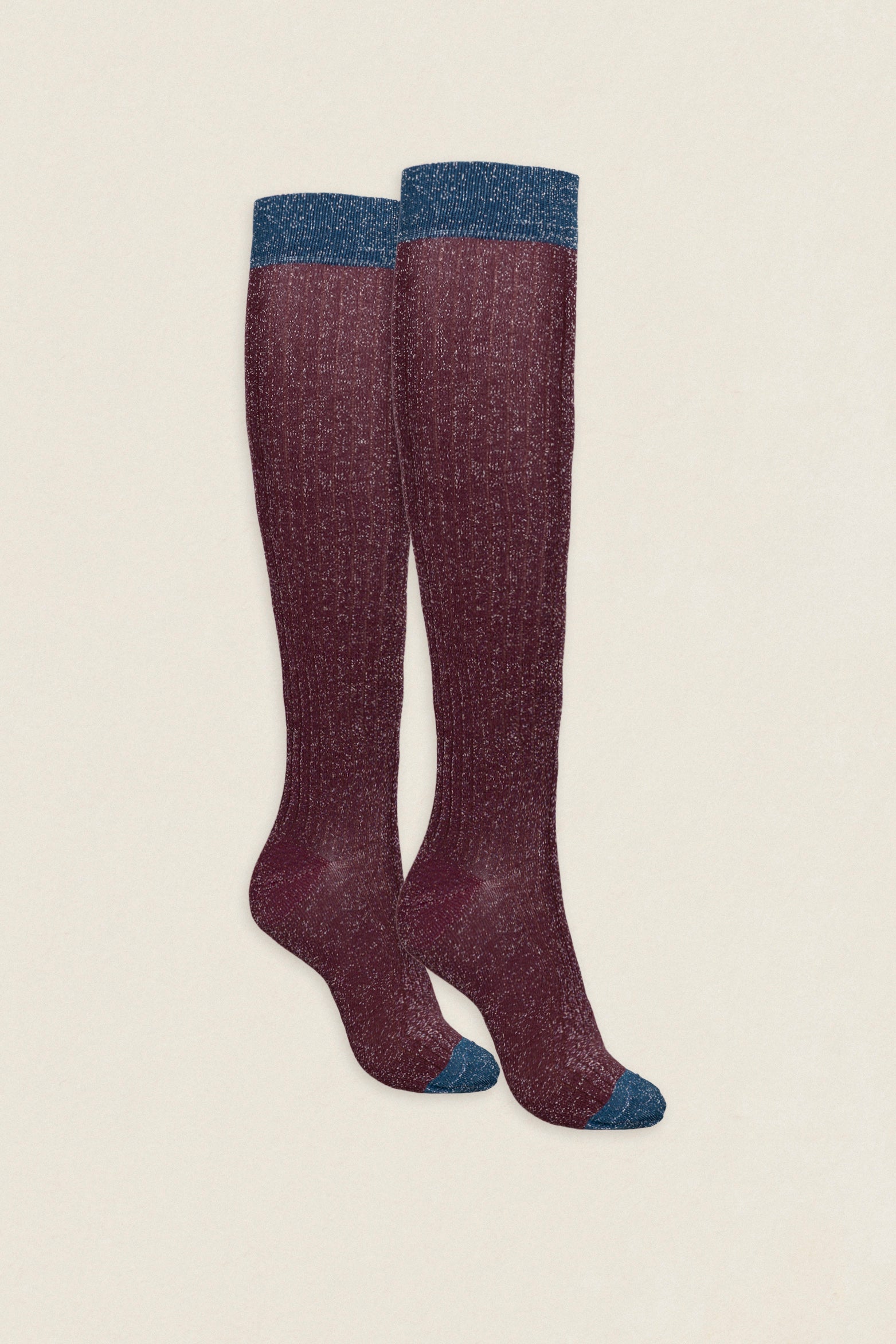 Calcetin purpurina caña alta PCA18 Granate con Dorado