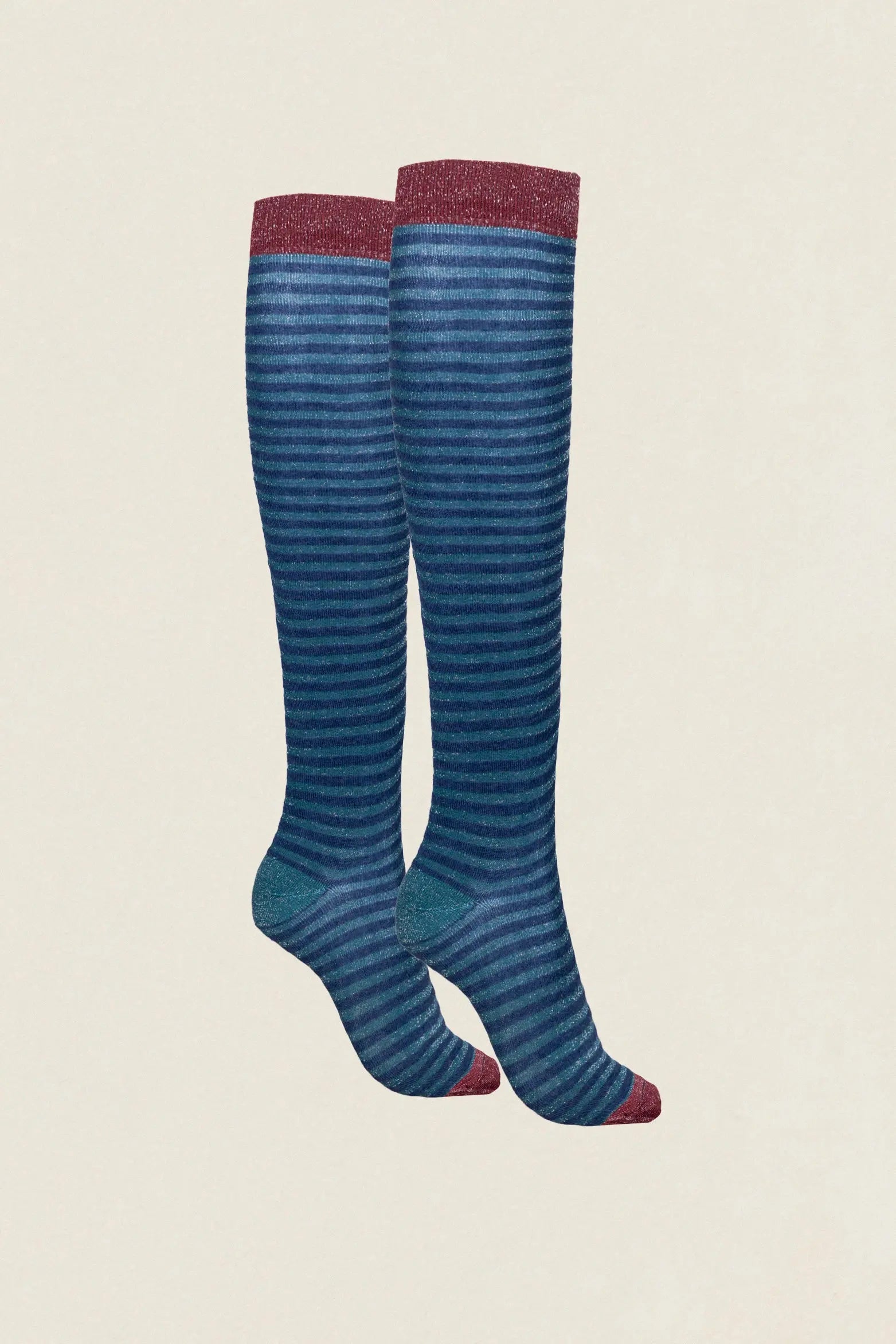 Calcetin purpurina caña alta PCAR05 rayas Marino - Vino