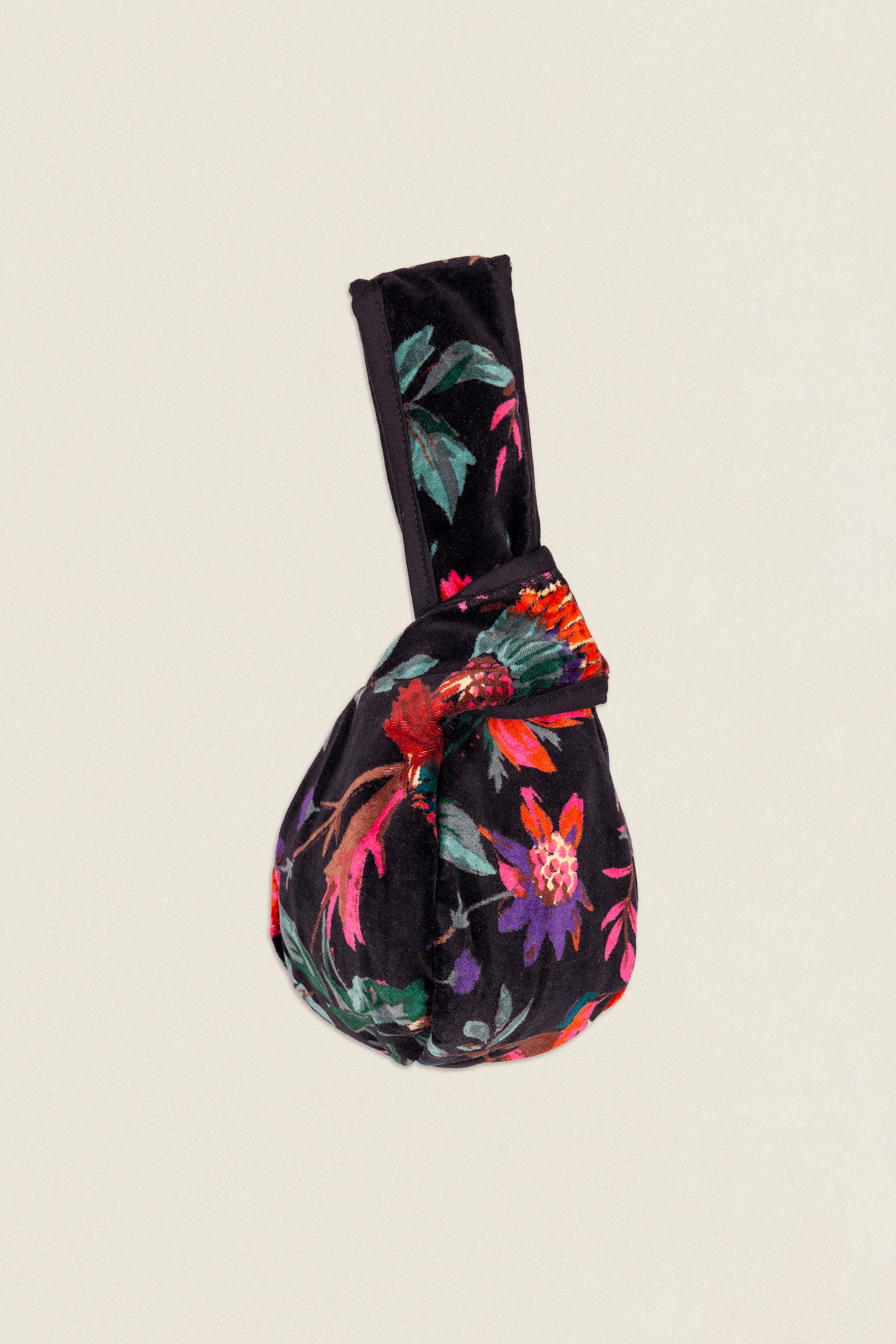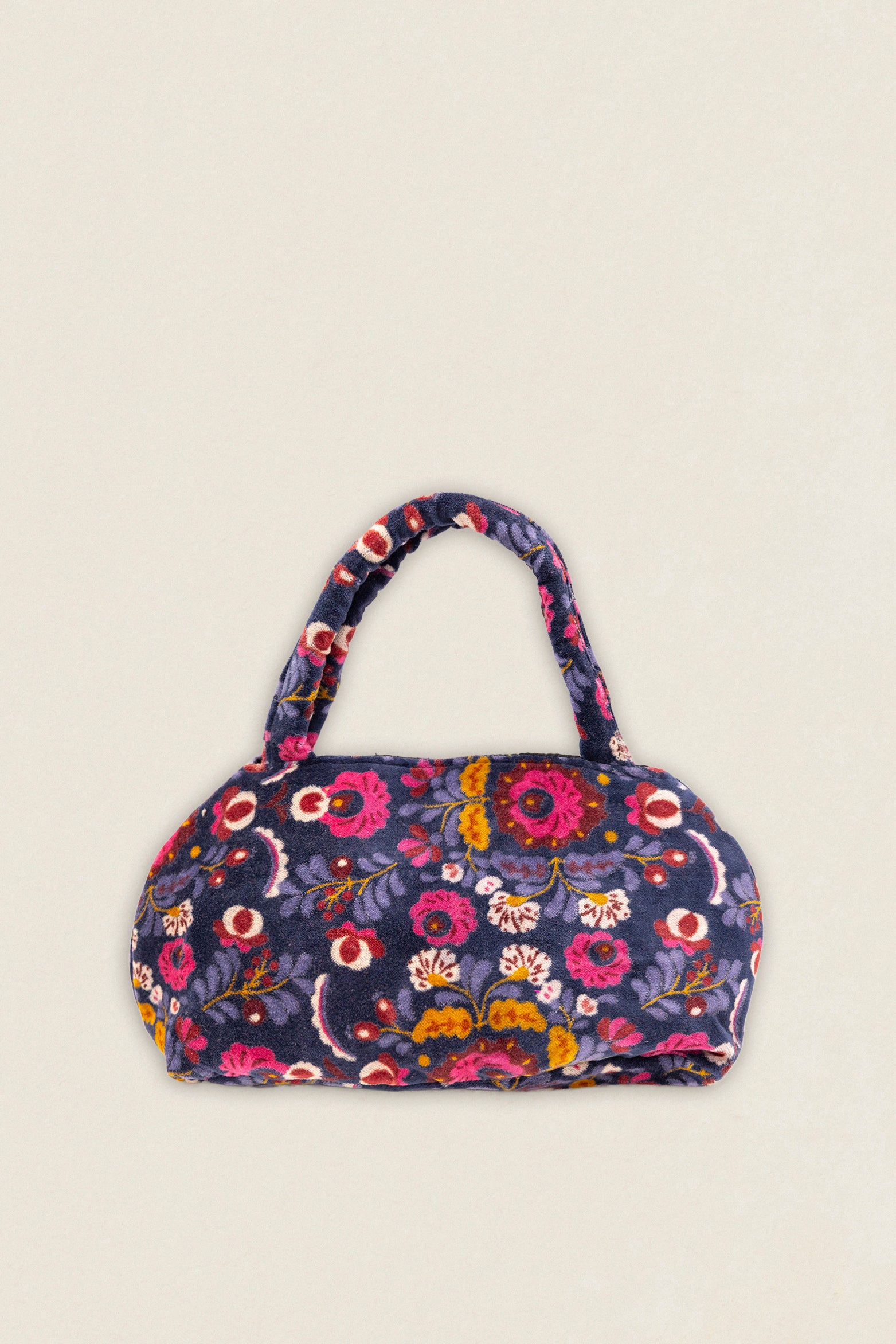 BOLT23 Bolso Terciopelo Floral Azul Marino