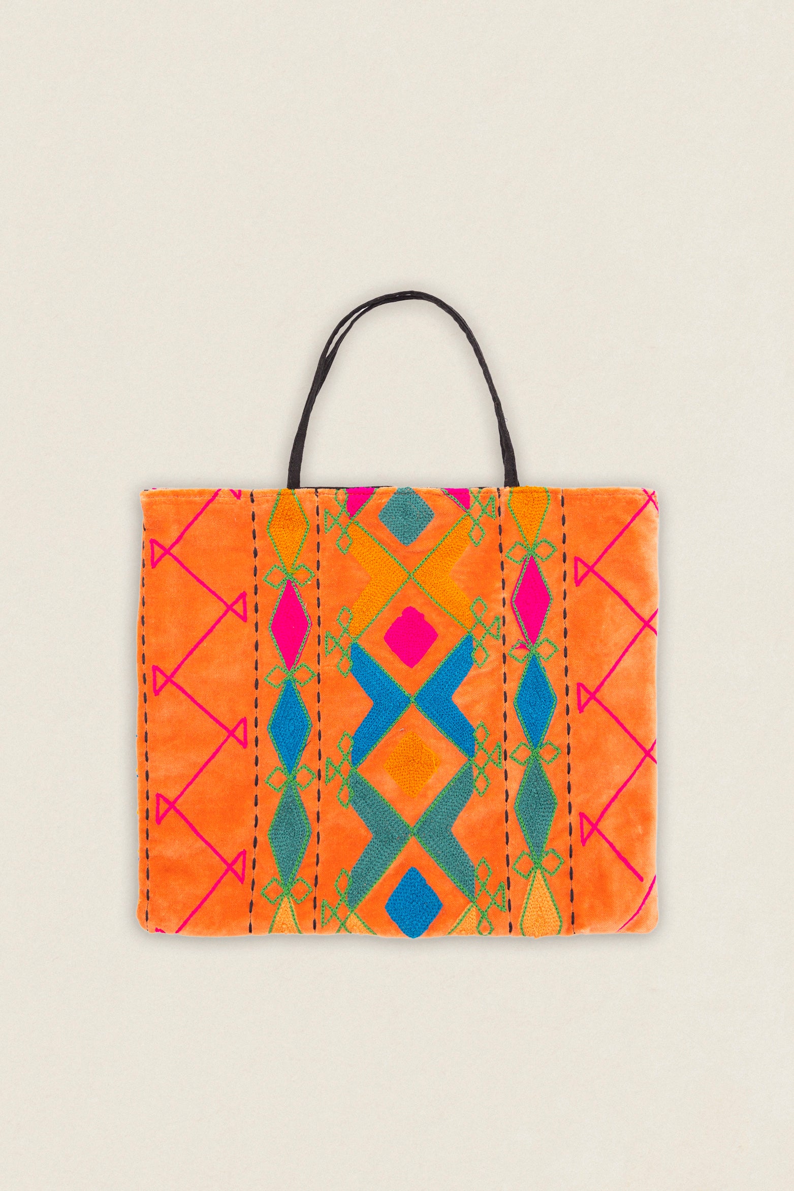 Bolso Shopper Terciopelo Bordado Ethnic Coral