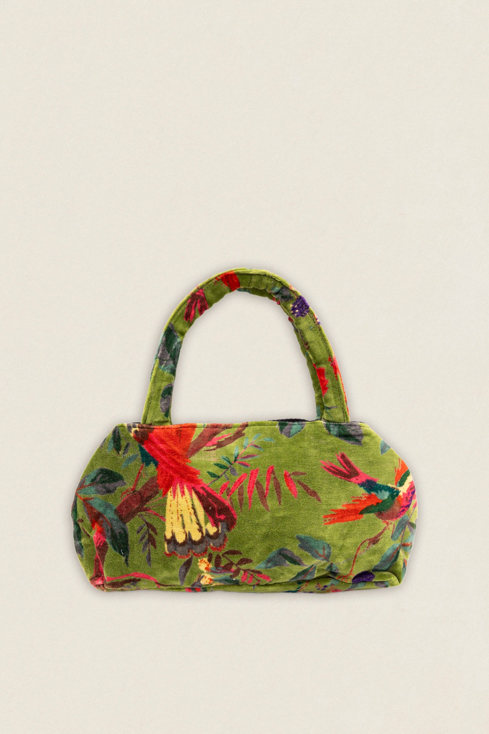 BOLT25 Bolso Terciopelo Pájaros Verde Oscuro