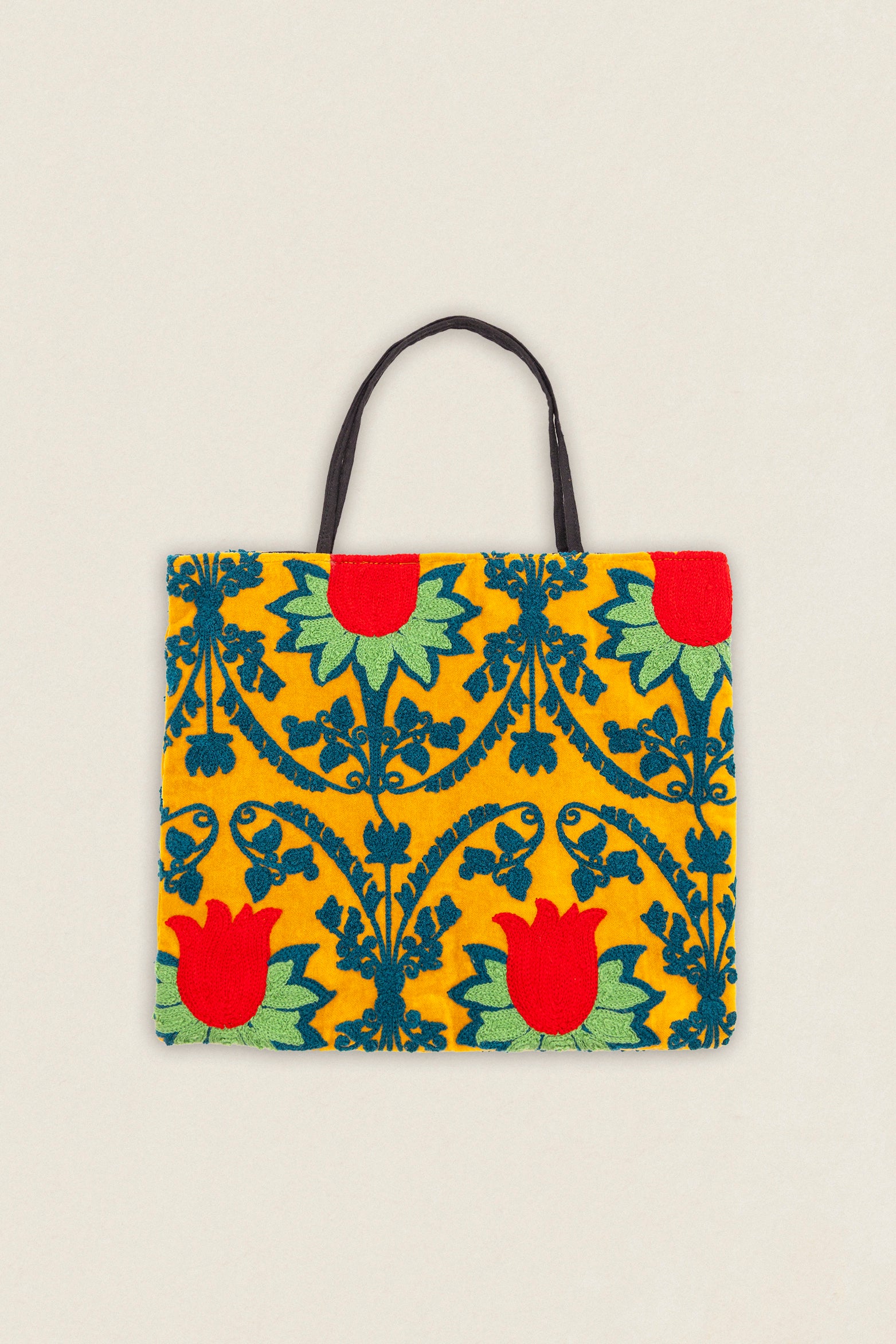 Bolso Shopper Terciopelo Bordado Ethnic Mostaza