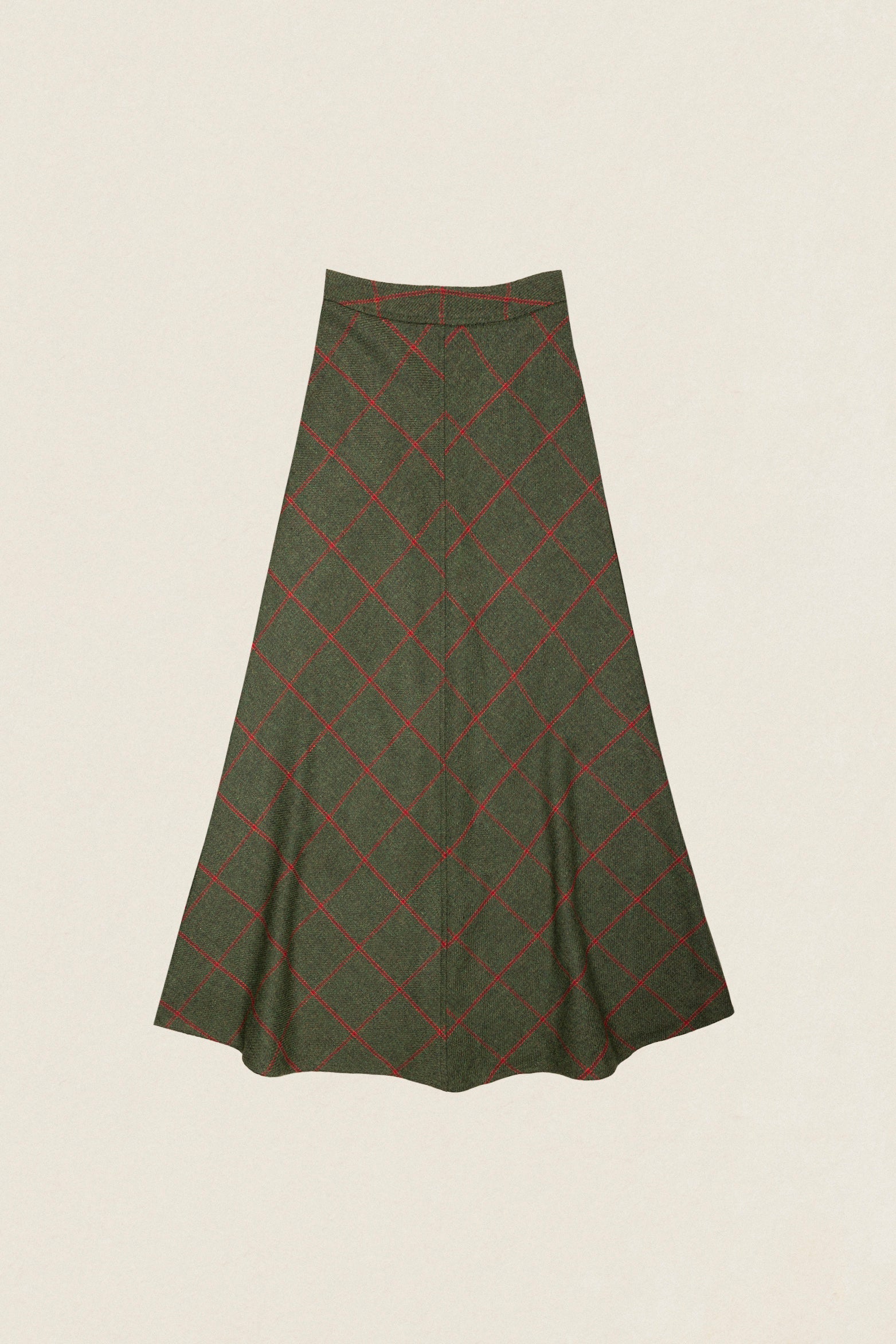 Falda Carola Verde Agua Cuadros Vino FAL07