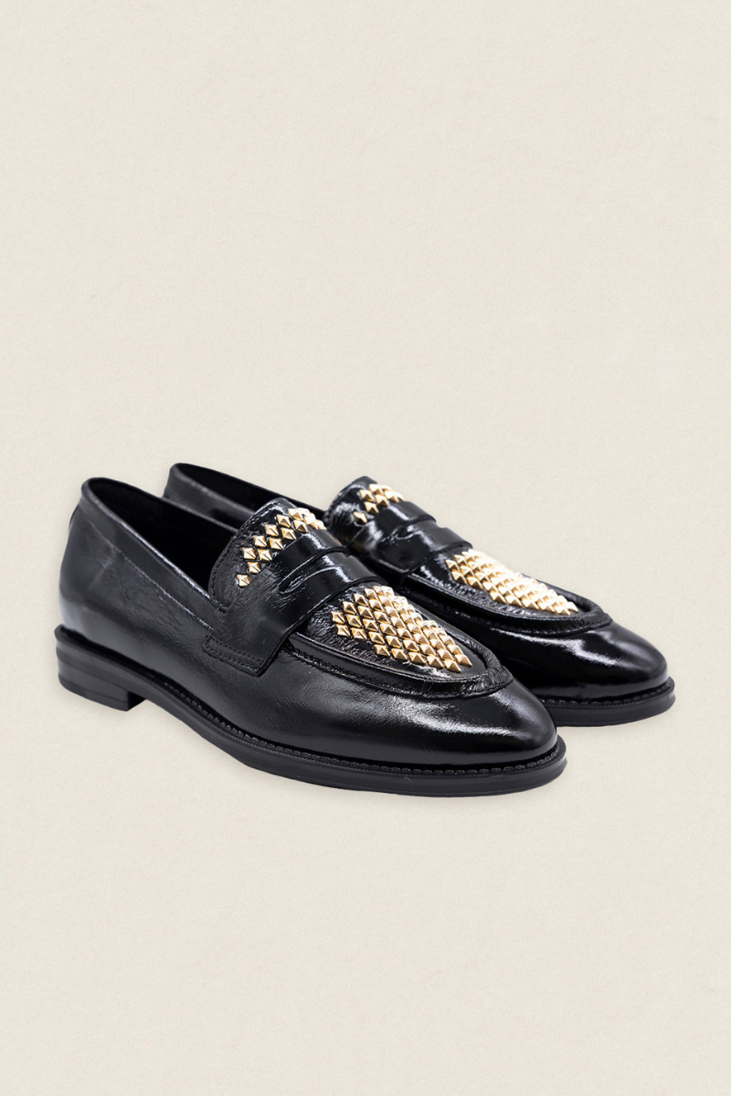 Mocasín Mimi Piel Negro Tachuela Dorada