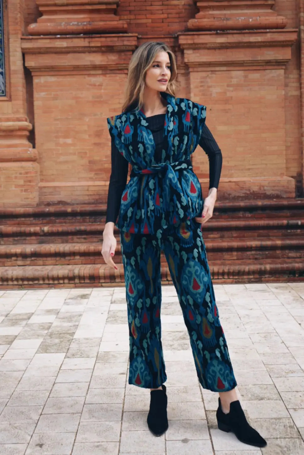 Pantalón Terciopelo Bordado Ikat Verde Agua