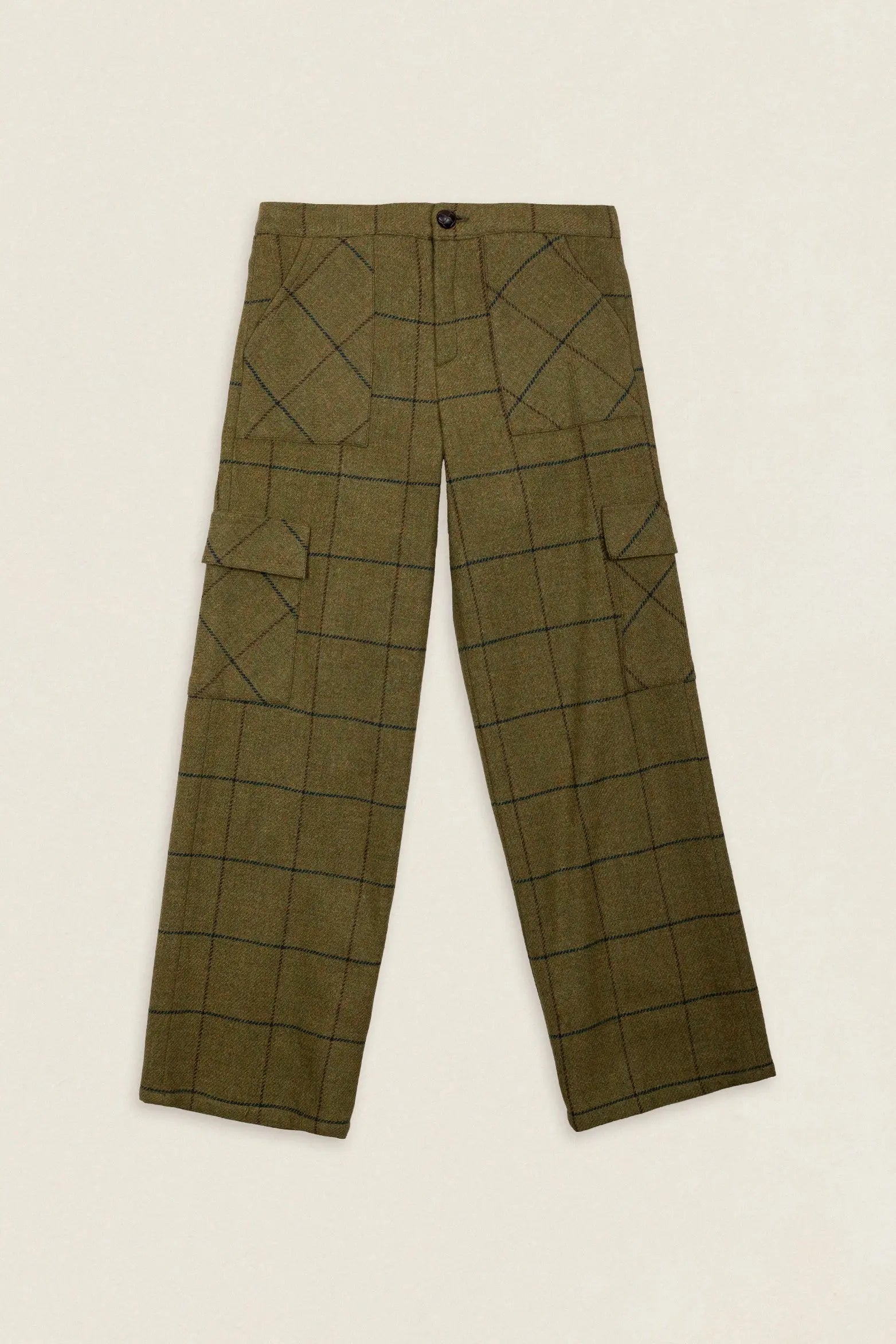Pantalón Cargo Verde Kaki Cuadros Marino
