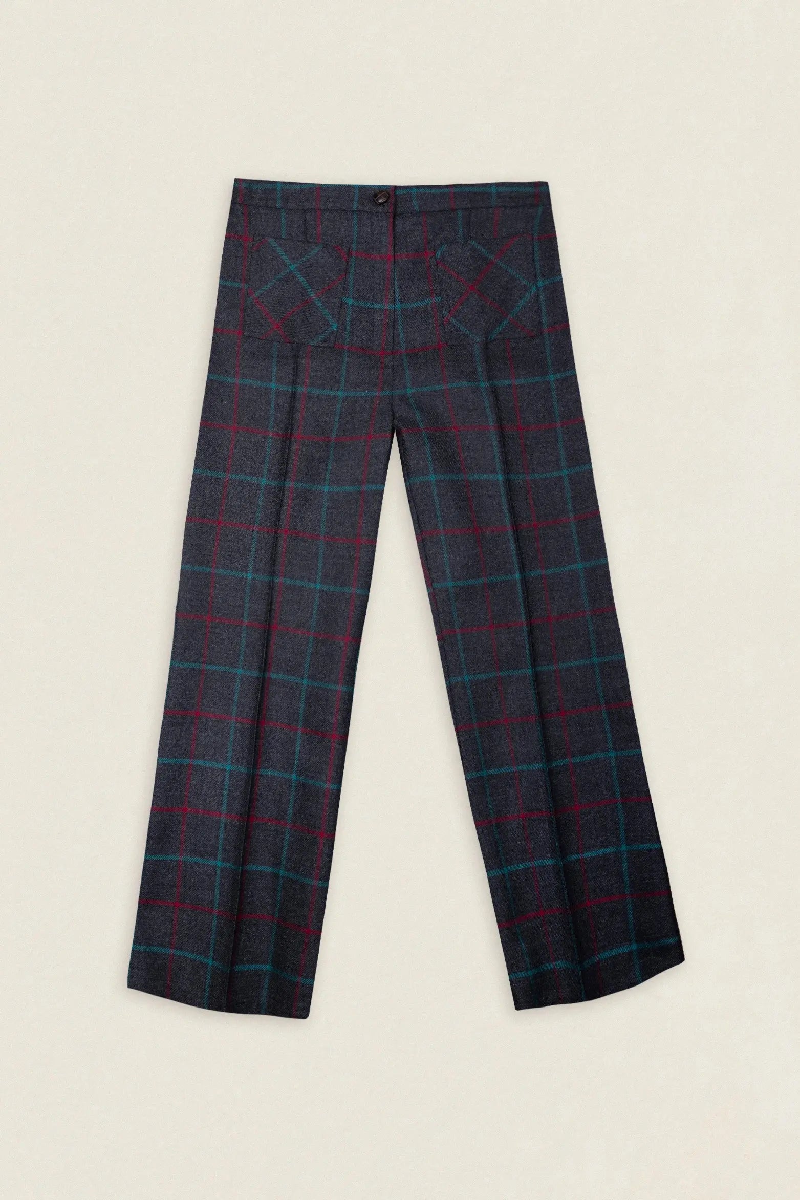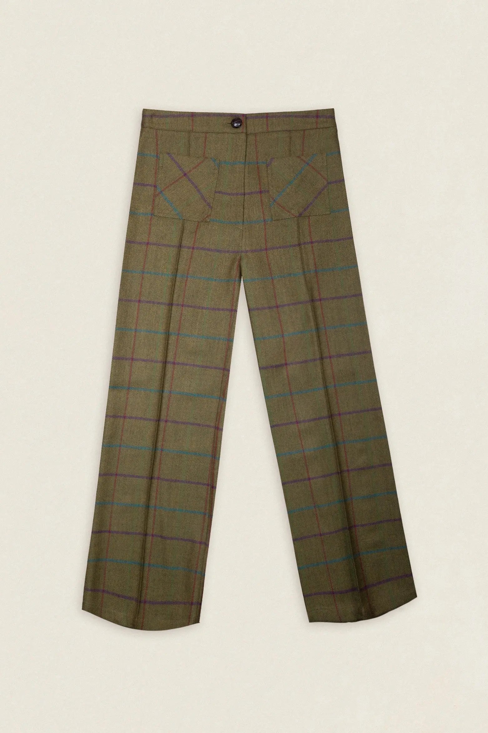 Pantalón Zoe Verde Campo Cuadros Azul PAN04