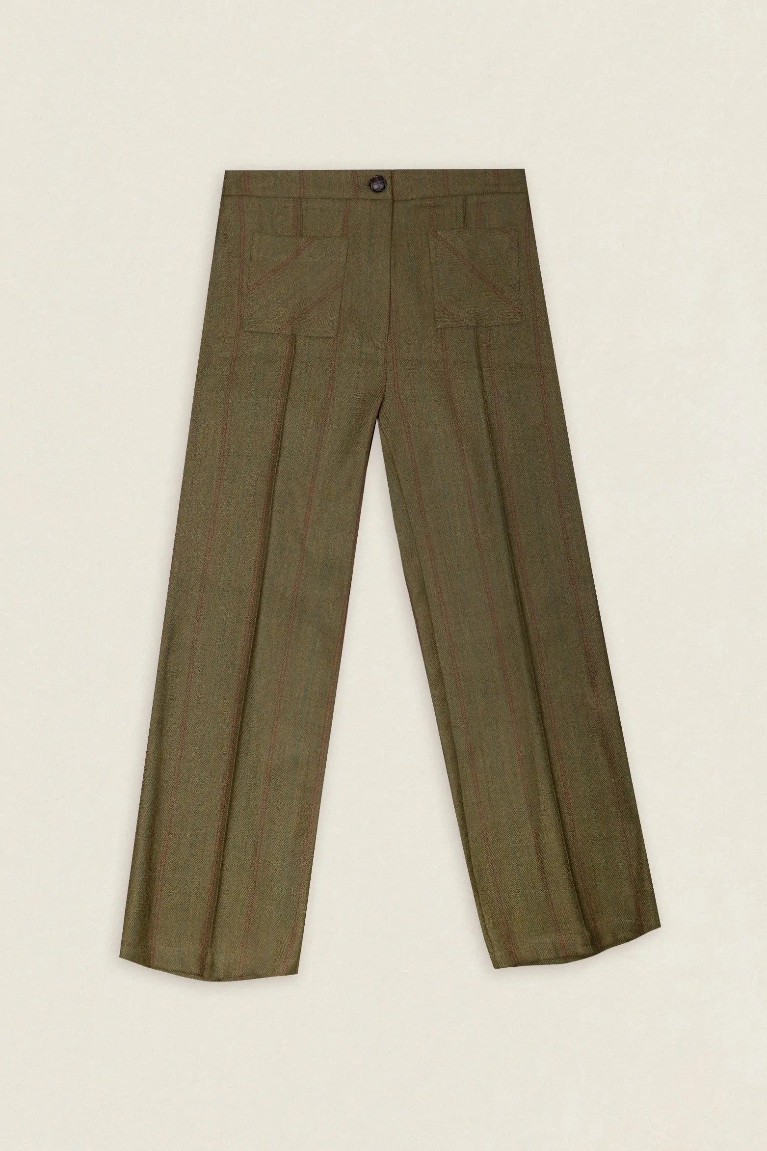 Pantalón Zoe Verde Kaki Rayas Burdeos y Verdes PAN01