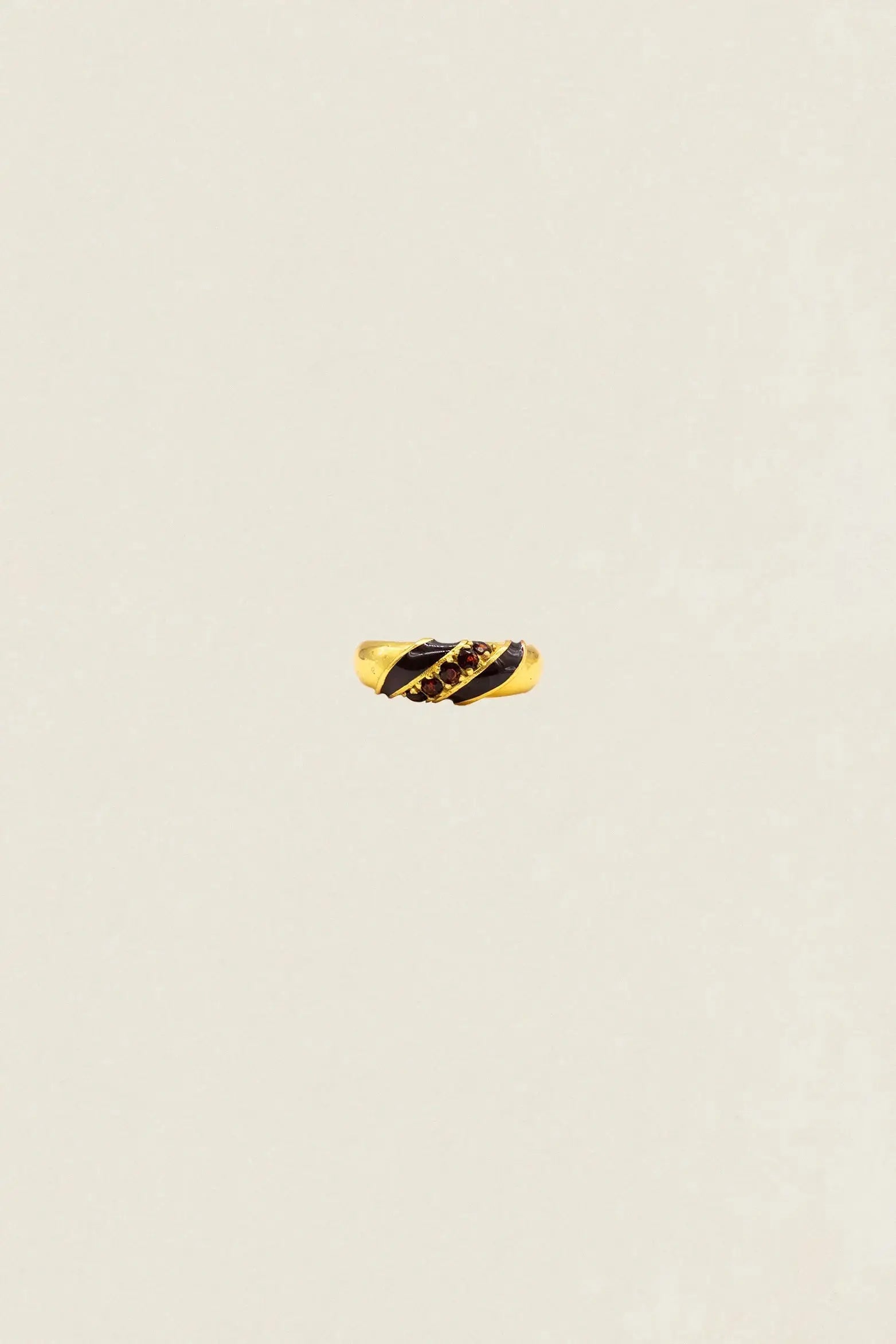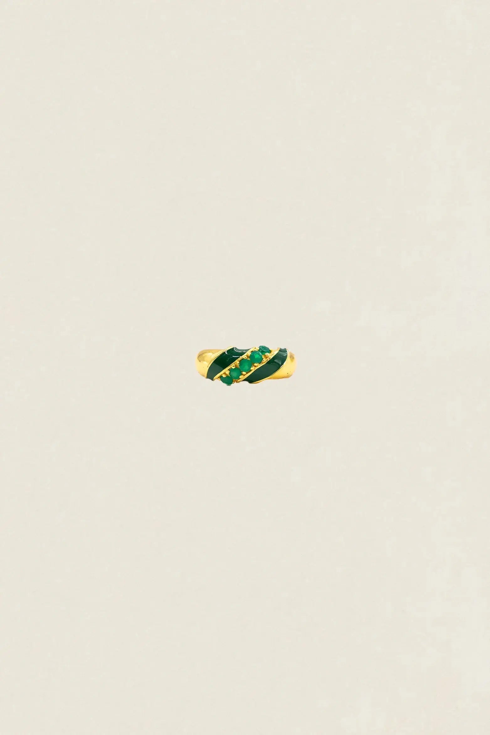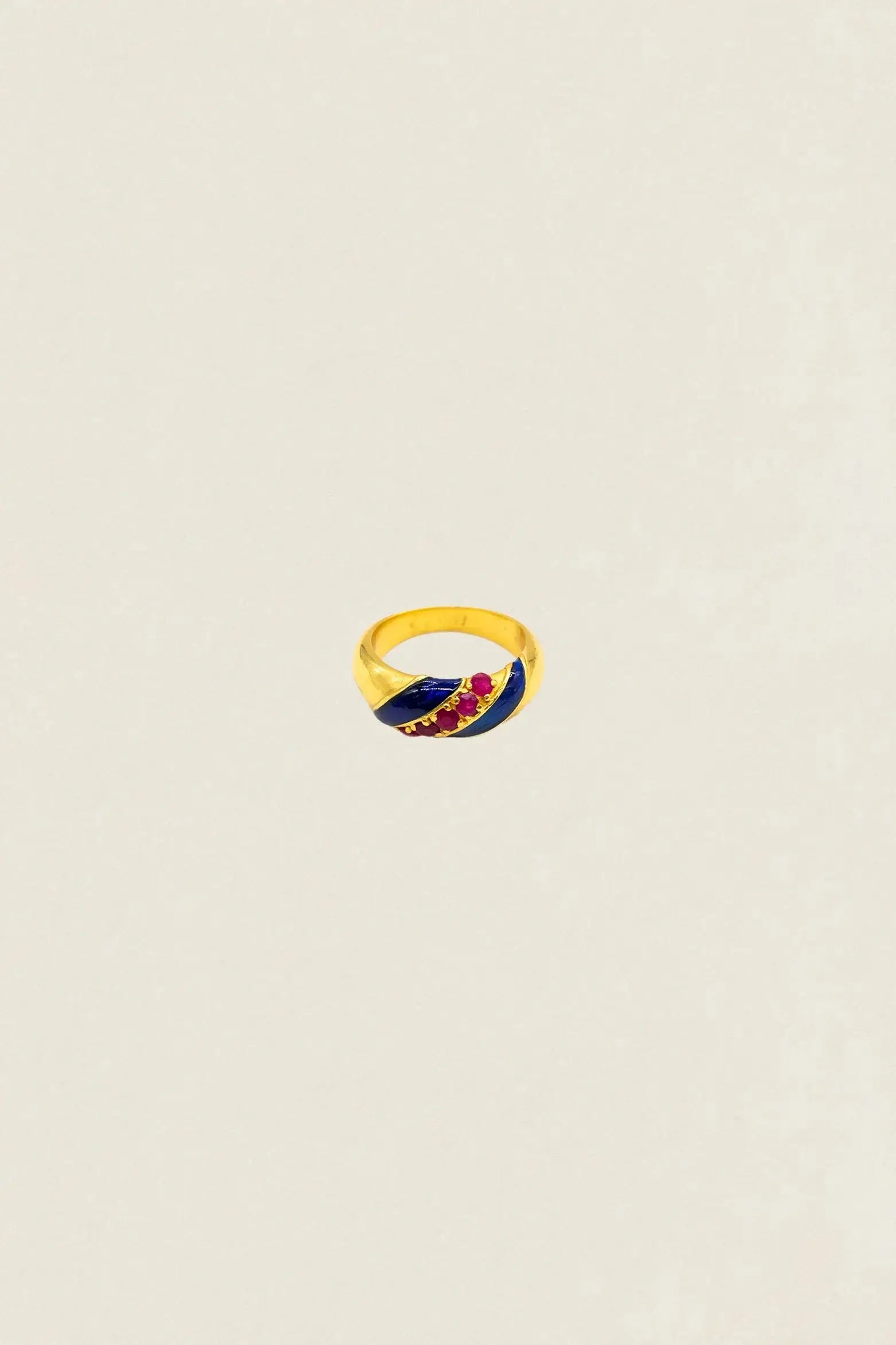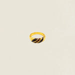 The Catalina AN06 Ring is a handcrafted jewel that combines movement, light, and elegance in a single piece. Made of bronze with an 18k gold plating, it stands out for its rounded shapes and colored lines that harmoniously wrap around the base.