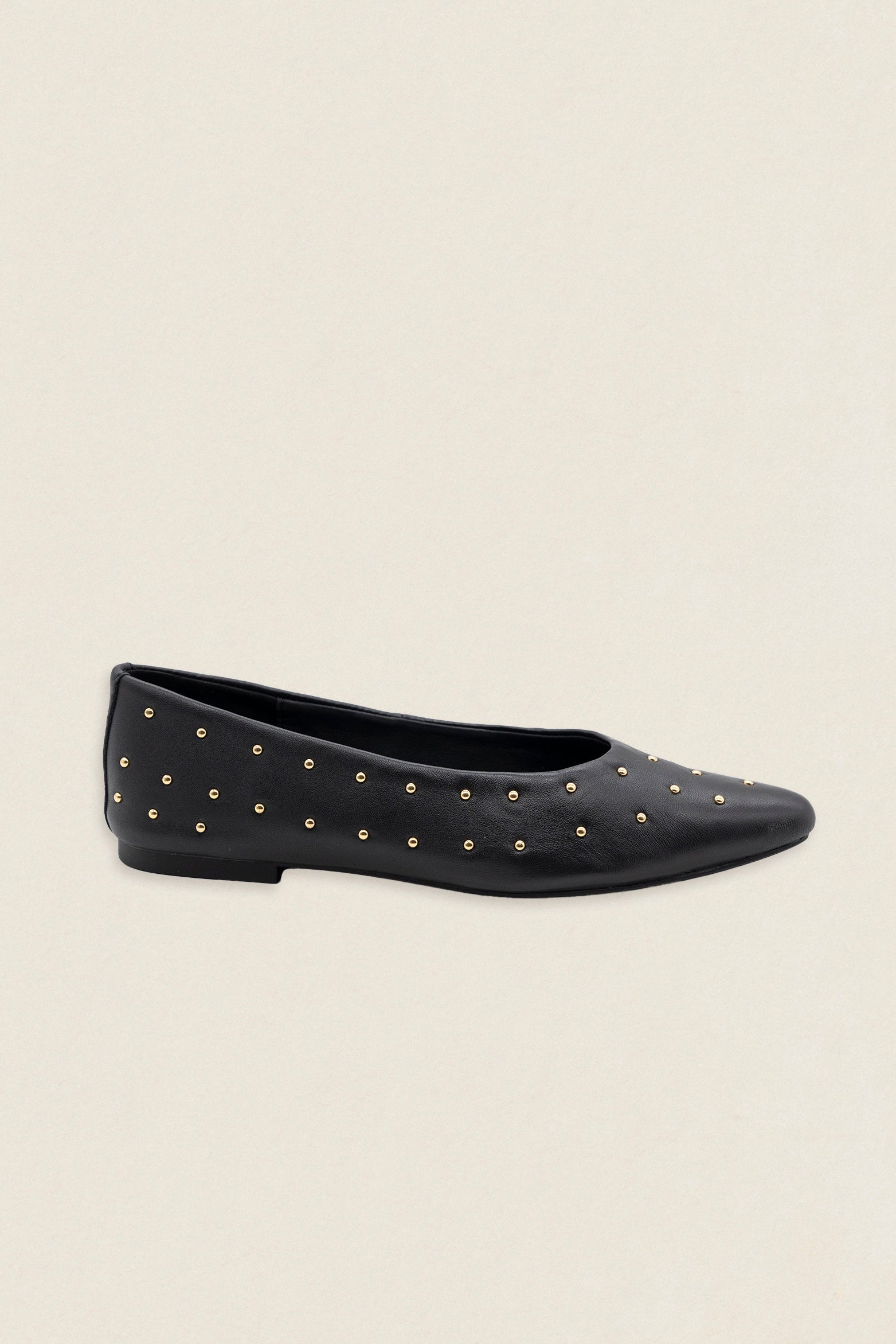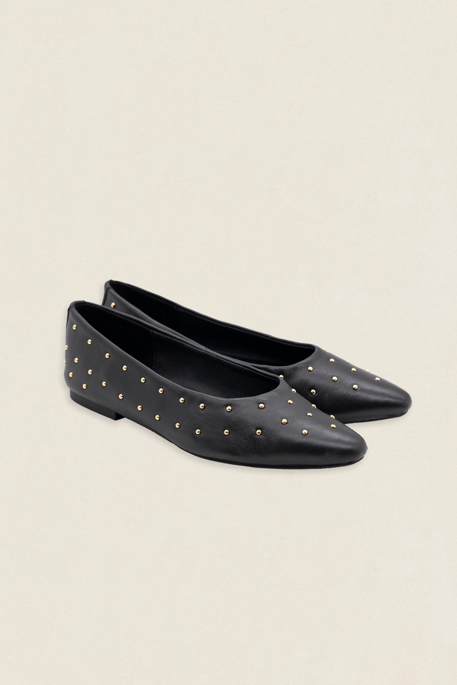 Estas bailarinas negras de piel combinan la elegancia atemporal con un toque moderno gracias a sus tachuelas decorativas.