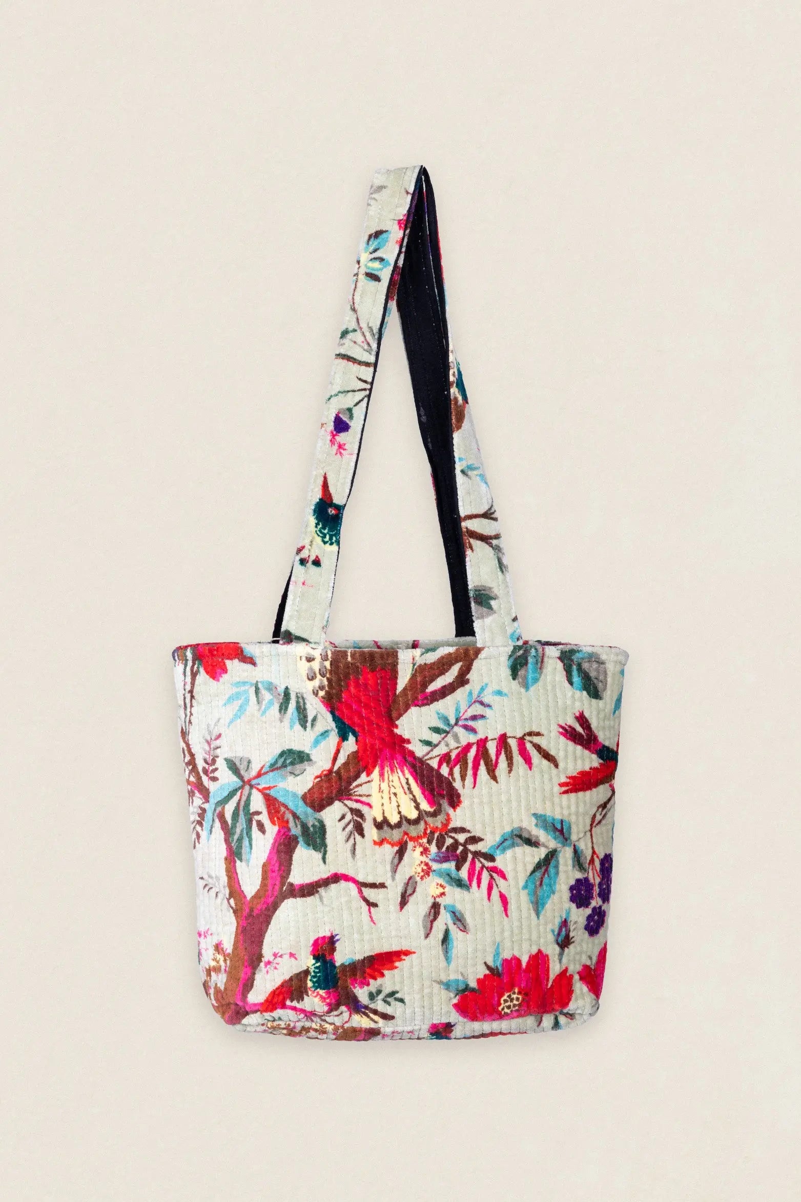 Ethnic Coral Embroidered Velvet Shopper Bag