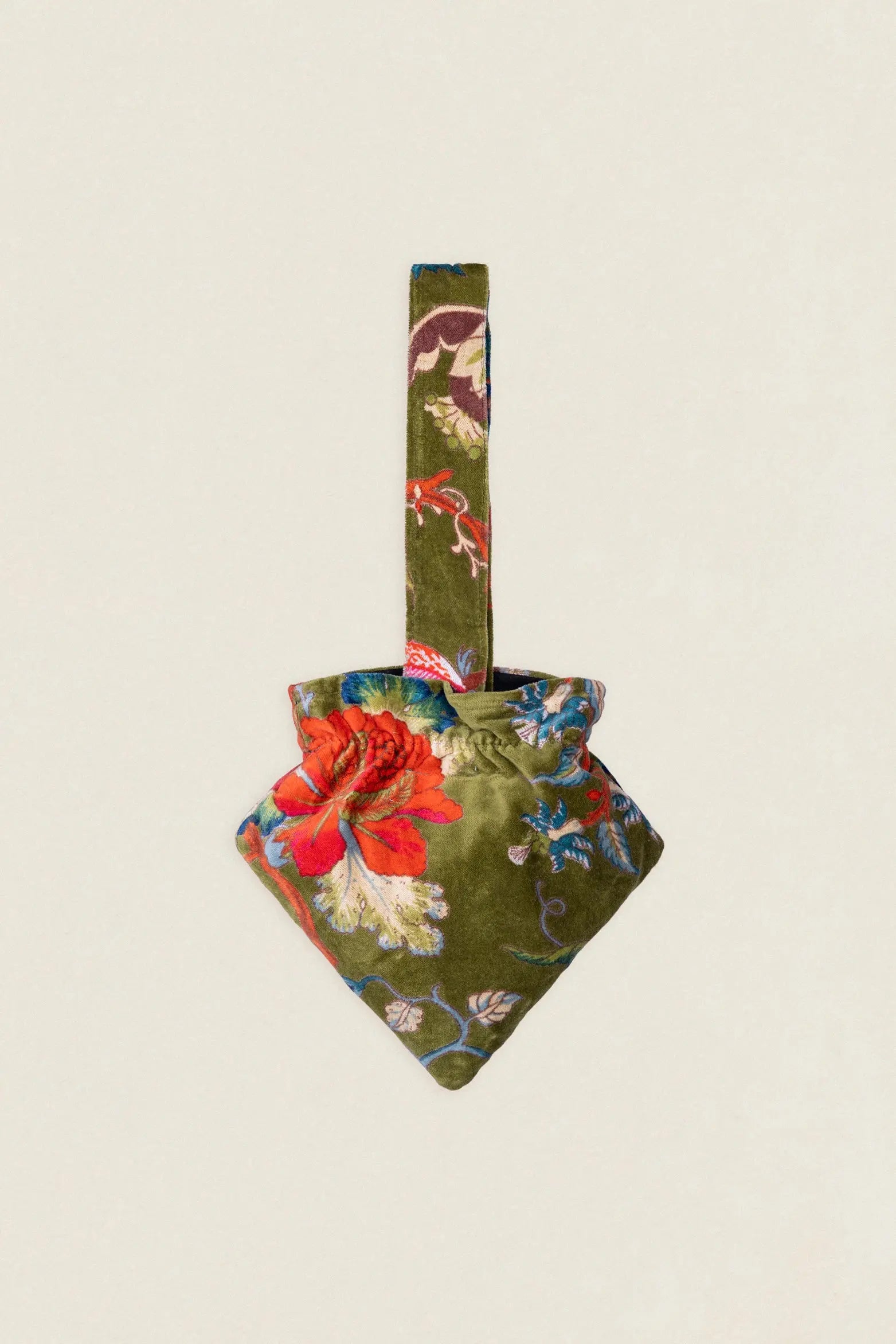 BTA12 Bolso Triángulo Asa Verde Kaki Flores The Nook Store