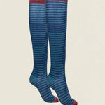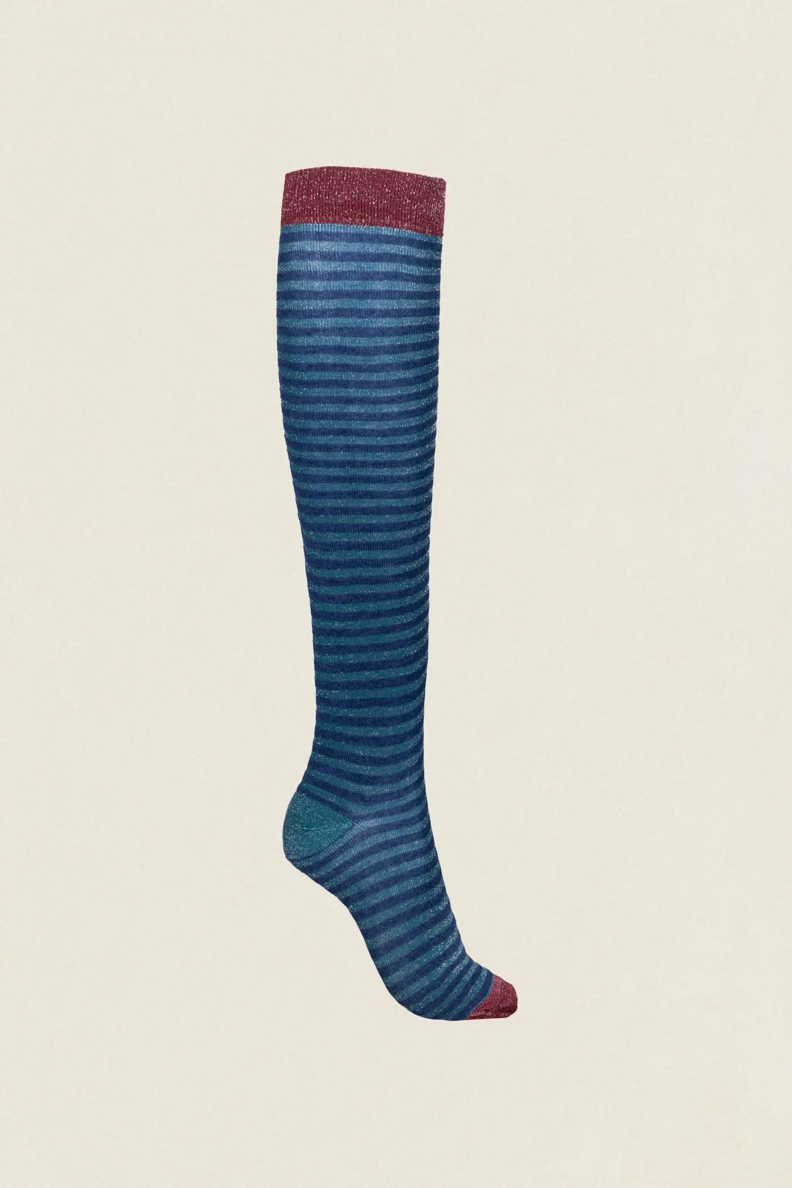 Glitter knee-high socks PCAR26 Stripes Navy - Green