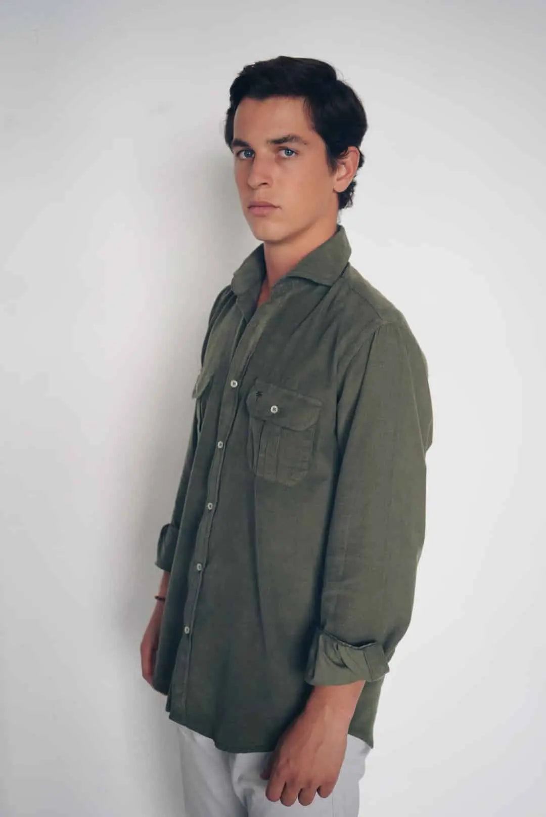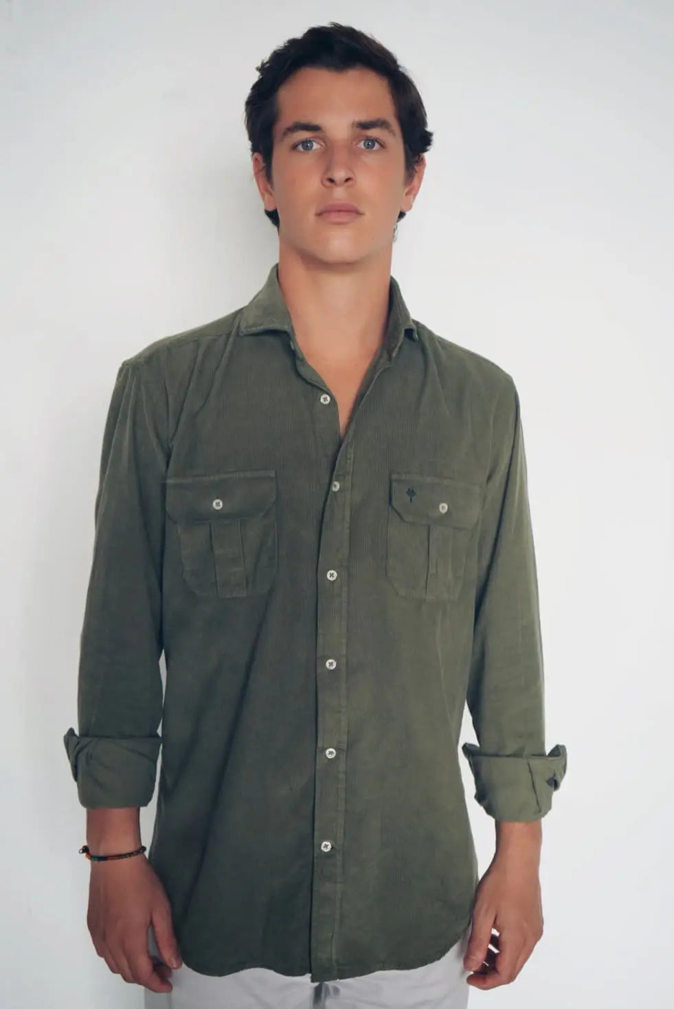 Men's micro-corduroy shirt with front button closure, featuring our palm tree logo and two functional chest pockets . This shirt combines a classic look with the soft, warm feel of micro-corduroy.