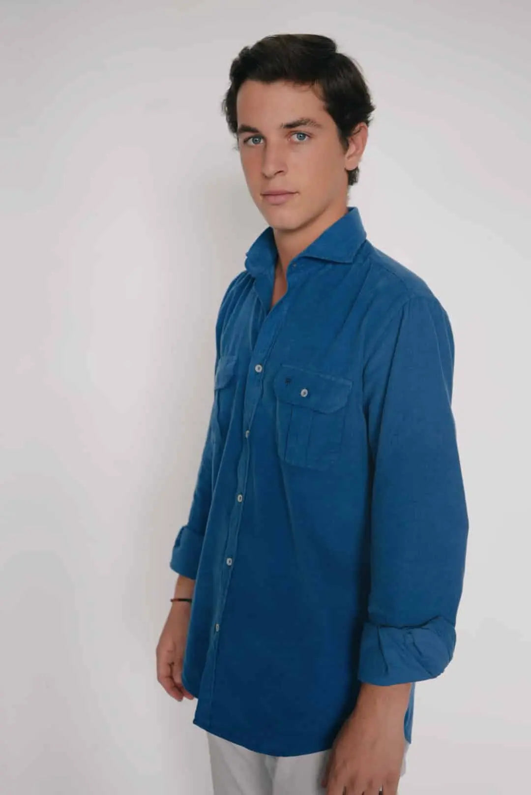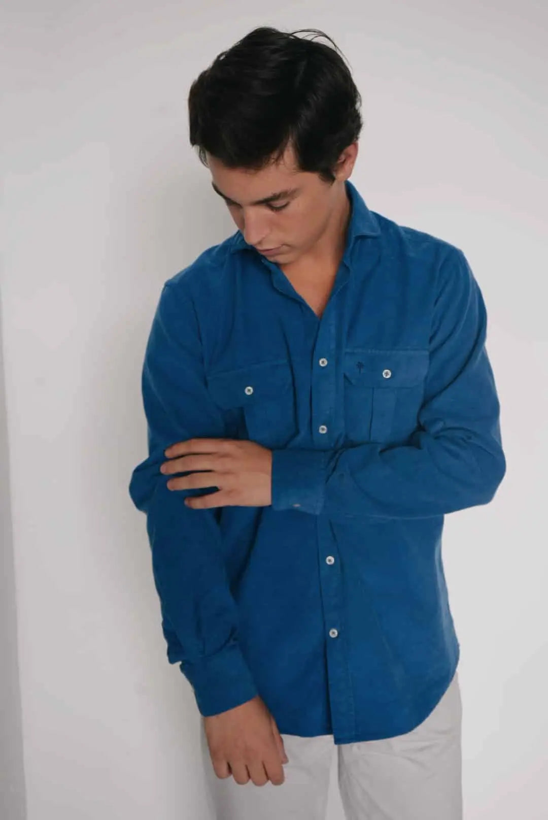 Men's micro-corduroy shirt with front button closure, featuring our palm tree logo and two functional chest pockets . This shirt combines a classic look with the soft, warm feel of micro-corduroy.