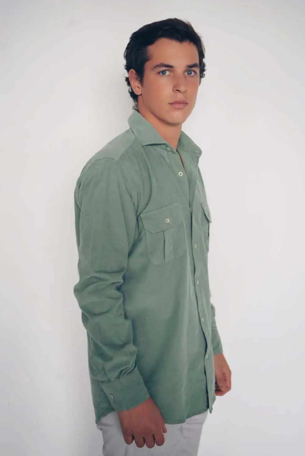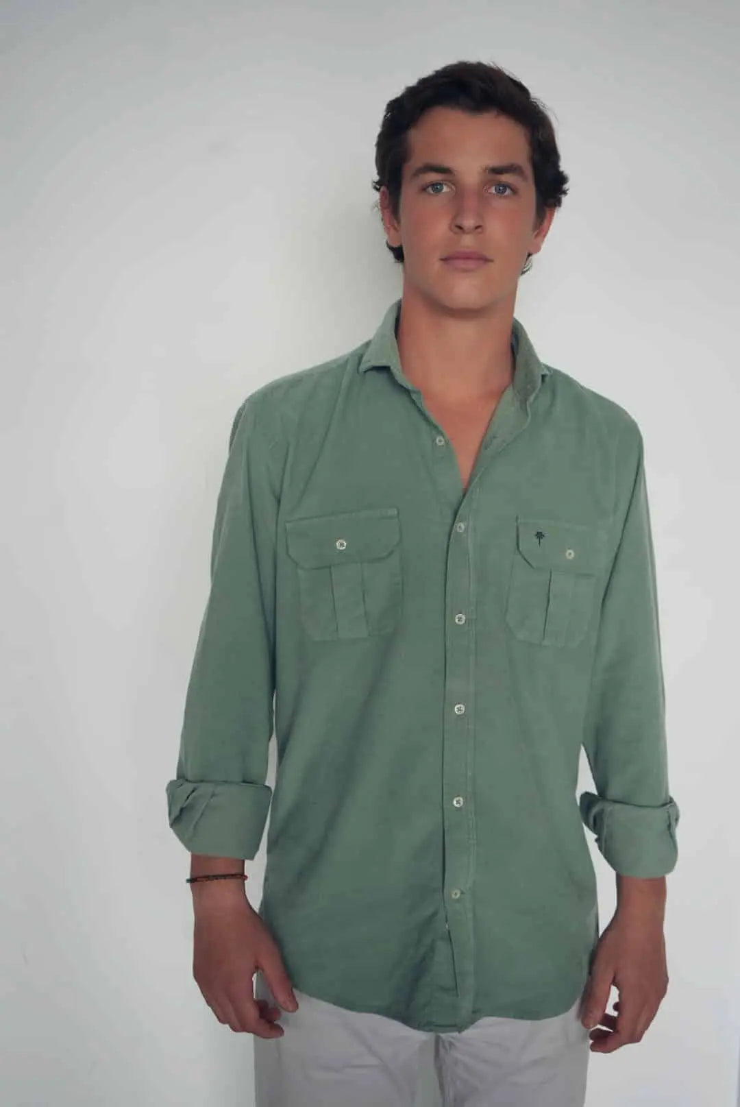 Men's micro-corduroy shirt with front button closure, featuring our palm tree logo and two functional chest pockets . This shirt combines a classic look with the soft, warm feel of micro-corduroy.