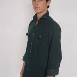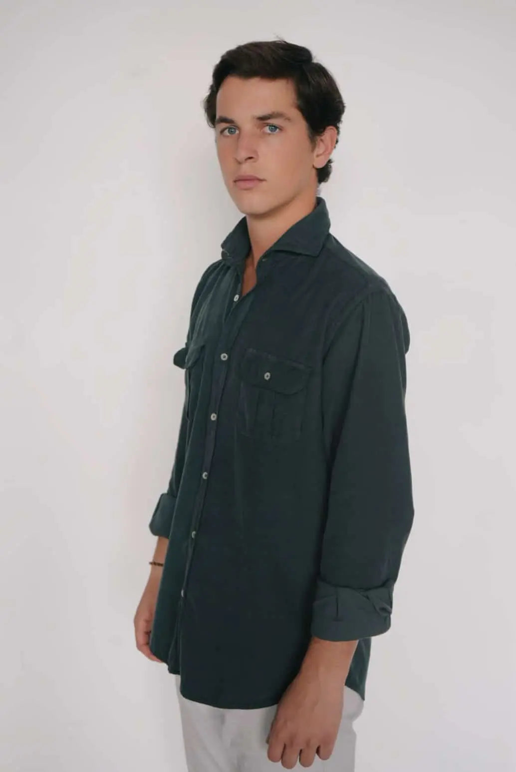Men's micro-corduroy shirt with front button closure, featuring our palm tree logo and two functional chest pockets . This shirt combines a classic look with the soft, warm feel of micro-corduroy.