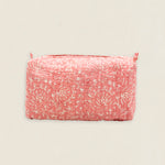Neceser de algodón estampado con forro interior plastificado con 4 bolsillos interiores. Cierre superior con cremallera.