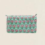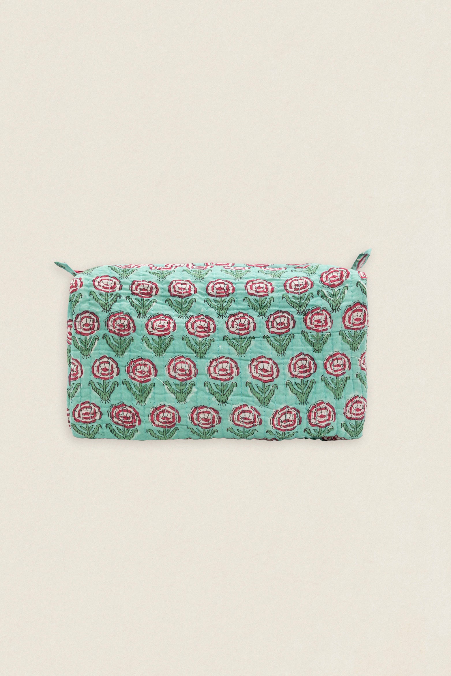 Neceser de algodón estampado con forro interior plastificado con 4 bolsillos interiores. Cierre superior con cremallera.