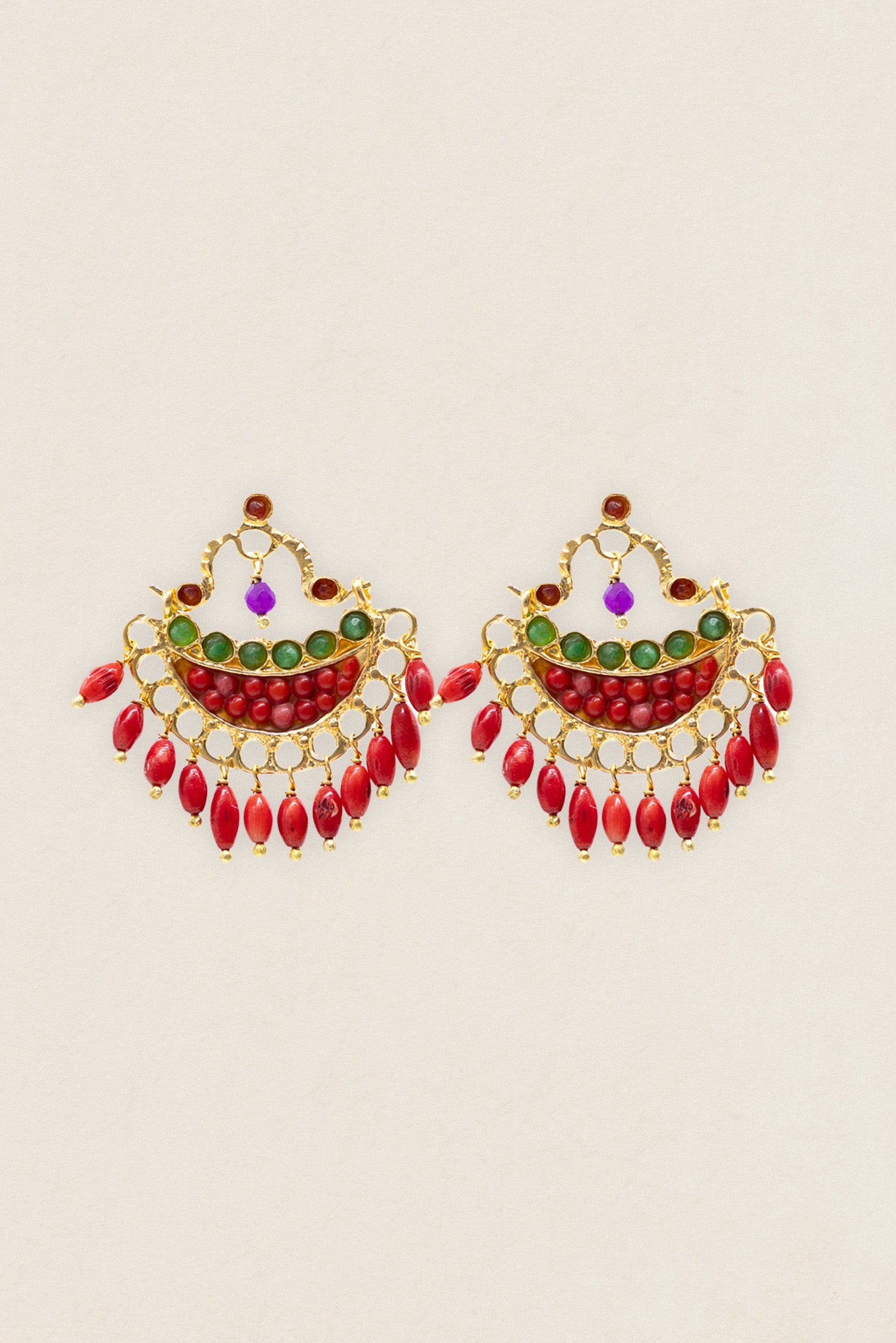 Se completan con una cuidada combinación de piedras minerales de diferentes colores y delicadas piedras colgantes, que aportan luz, dinamismo y un toque muy especial a la pieza.