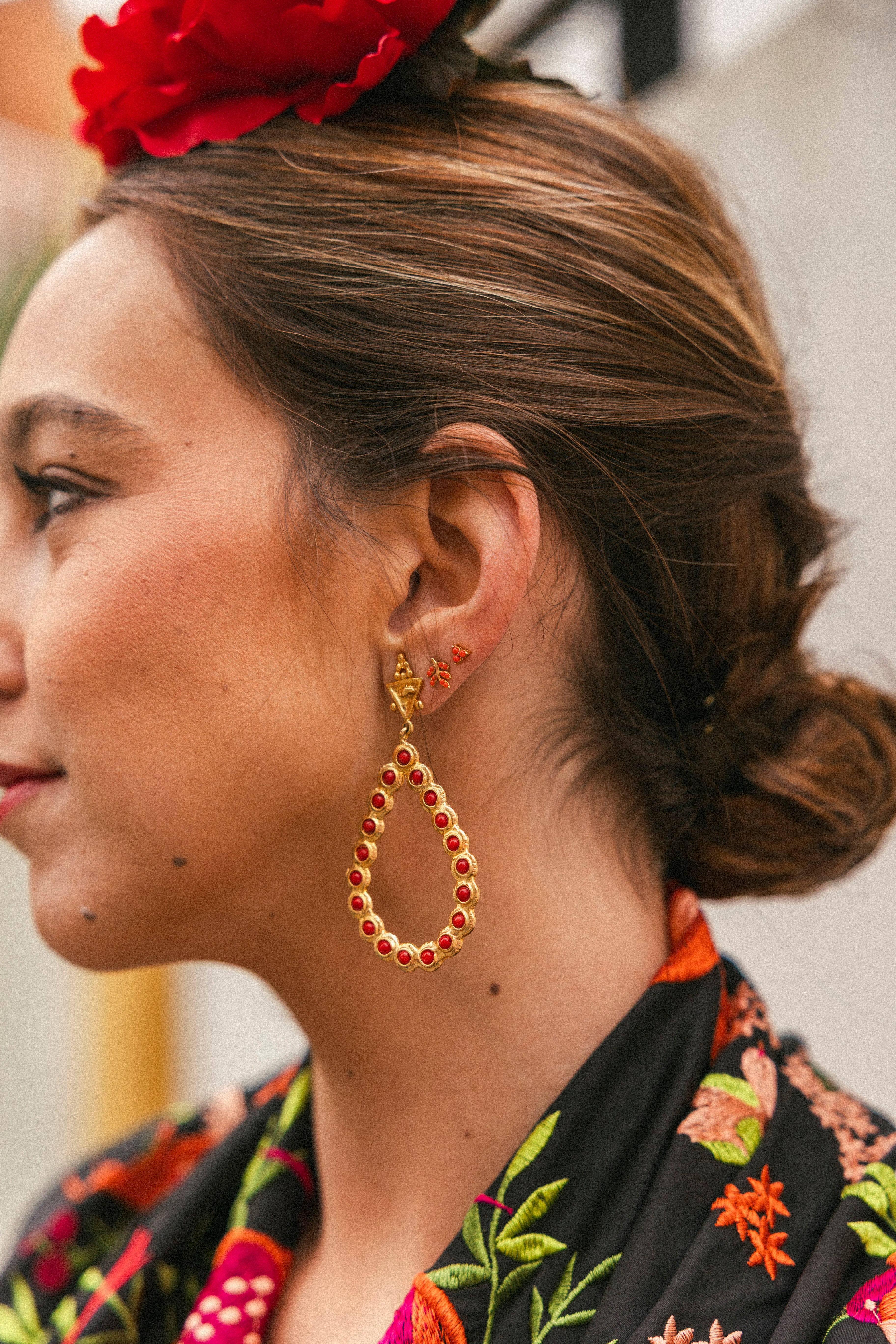 Los Pendientes Grace PEN123 destacan por su elegancia atemporal y su delicado diseño en forma de lágrima de bronce bañado en oro. Están compuestos por pequeñas piedras redondas de color que se disponen cuidadosamente para dibujar la silueta de la lágrima, creando un efecto luminoso y sofisticado. Perfectos para darle un toque único y original a tus outfits más veraniegos.
