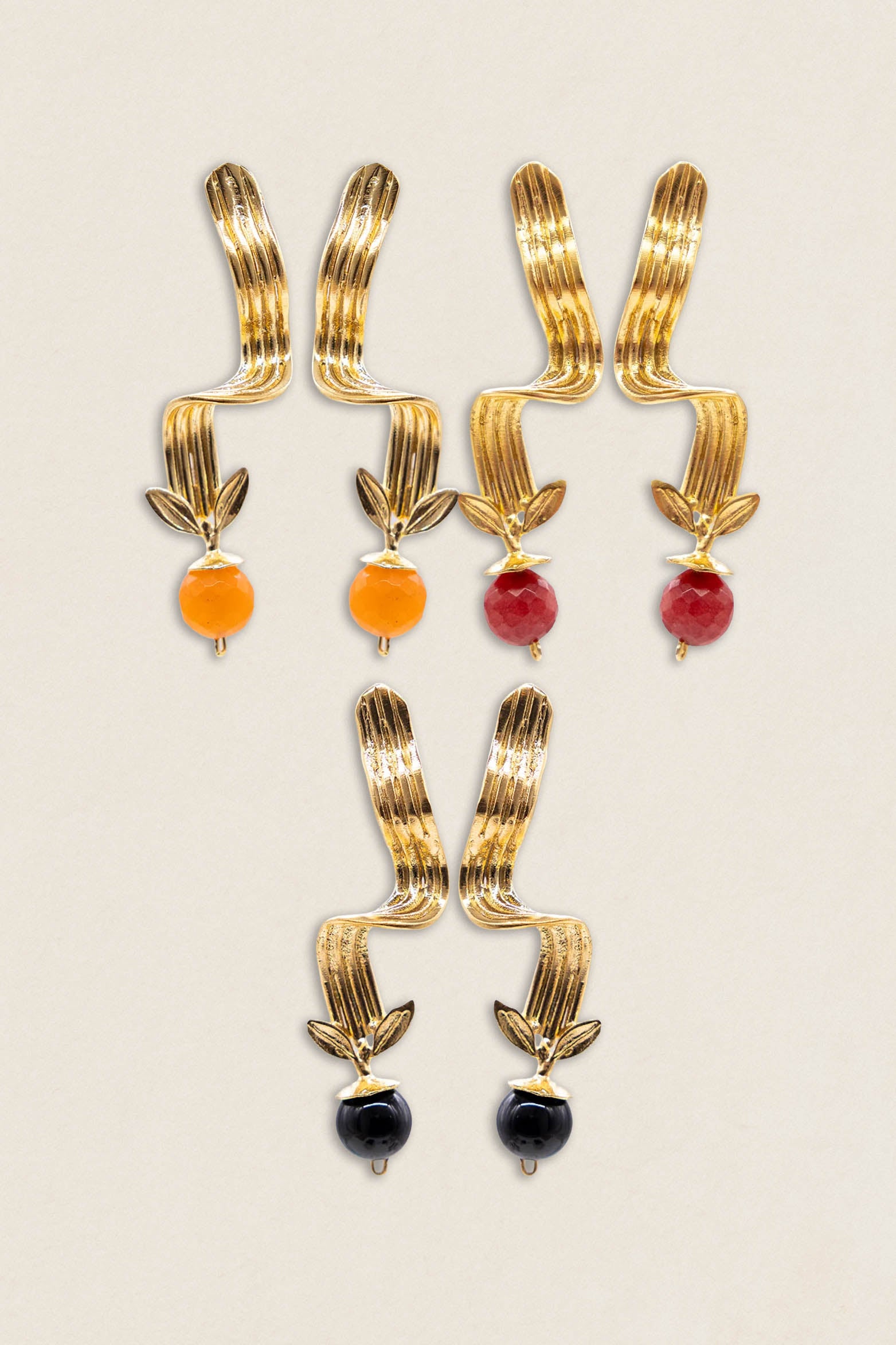 Nuestros pendientes Naia están elaborados en bronce chapado en oro y destacan por su diseño delicado de inspiración natural.