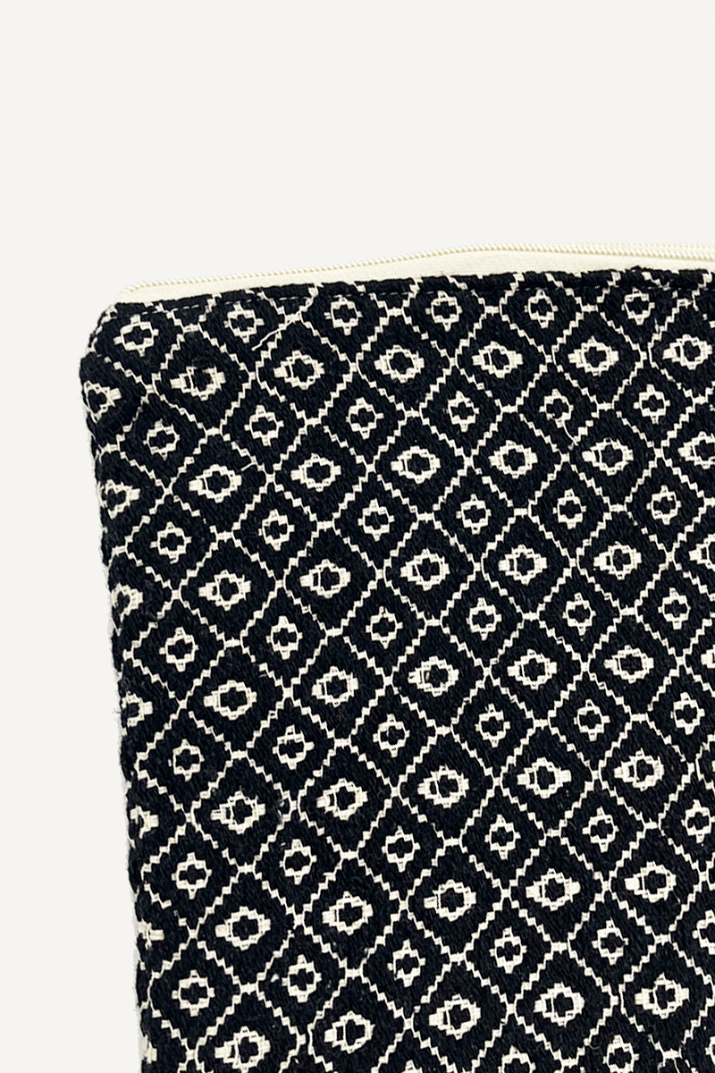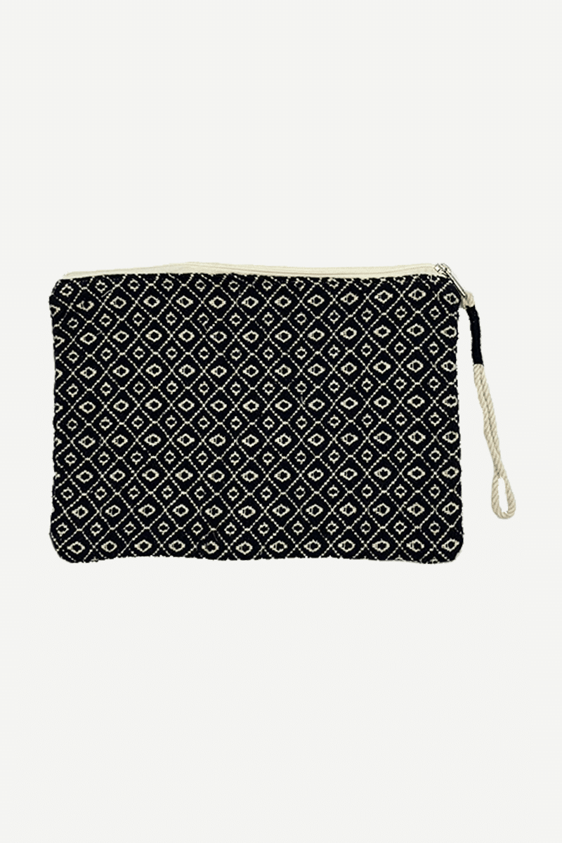 Bolso de mano de algodón. Tiene cierre con cremallera y asa incorporada. Cuenta además con un bolsillo interior.