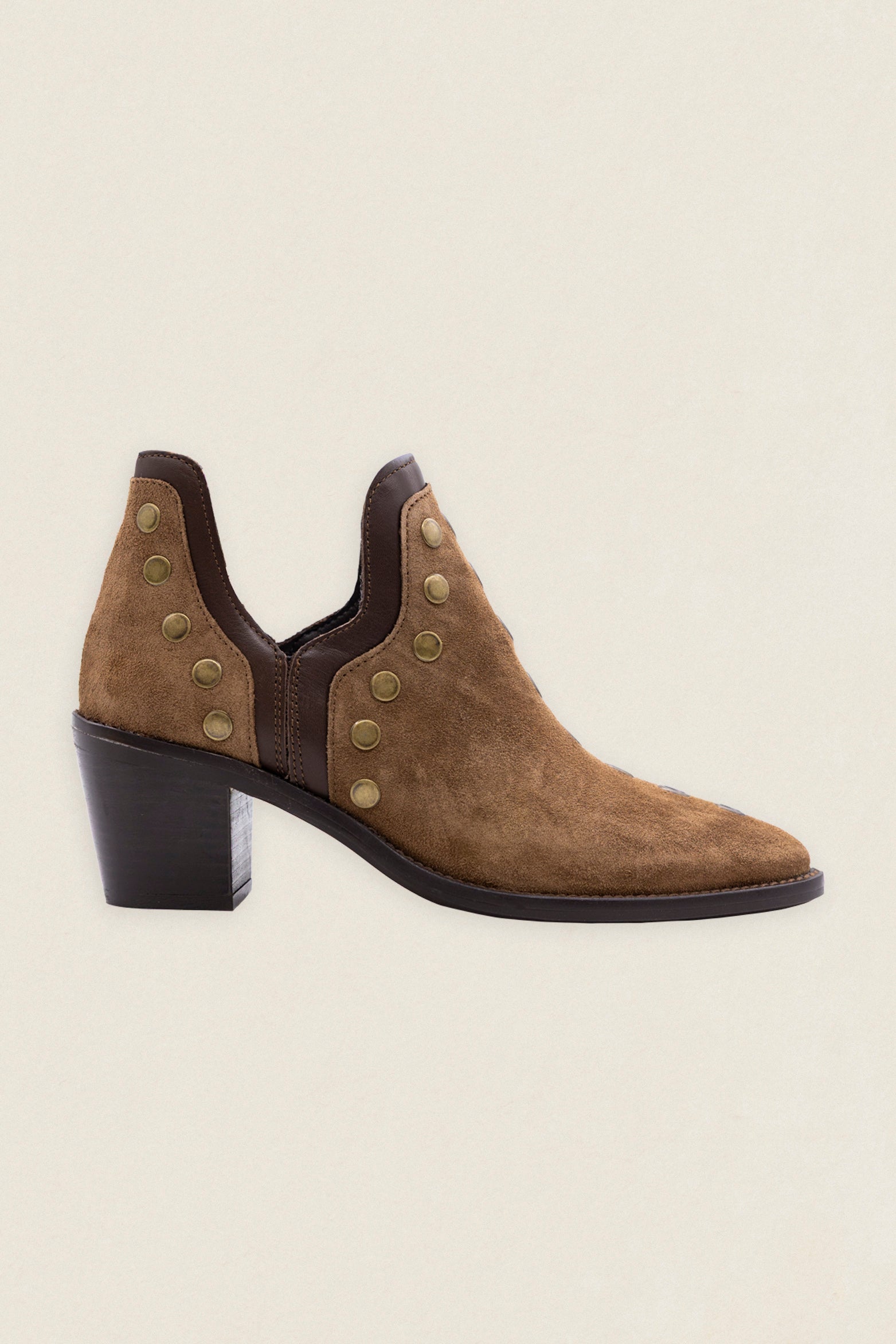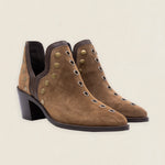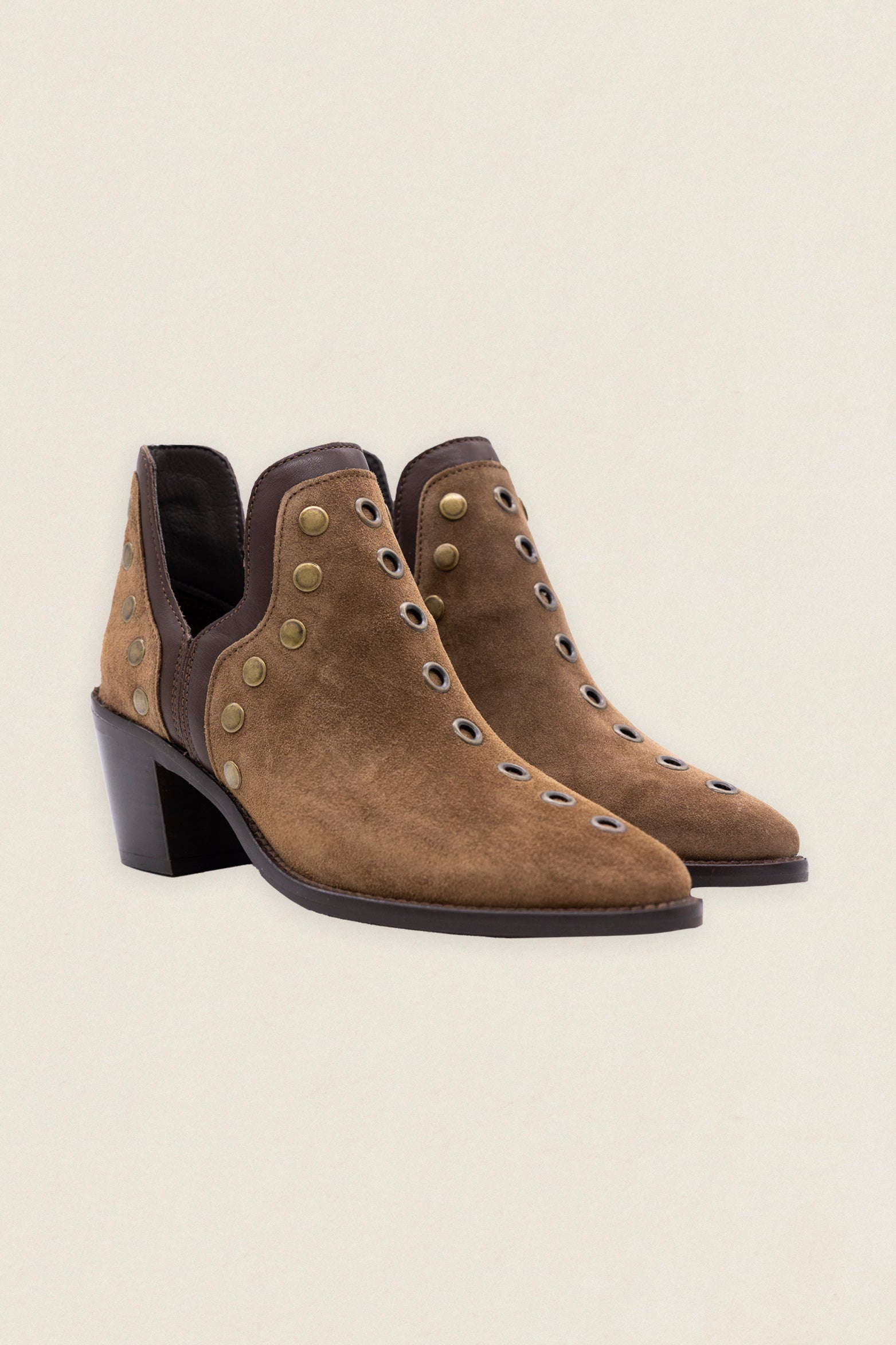 Las botas Mer regresan en una versión aún más especial. Confeccionadas en ante beige de primera calidad, destacan por sus detalles de tachuelas doradas decorativas, que aportan un toque original y lleno de personalidad sin perder la esencia elegante que las caracteriza.