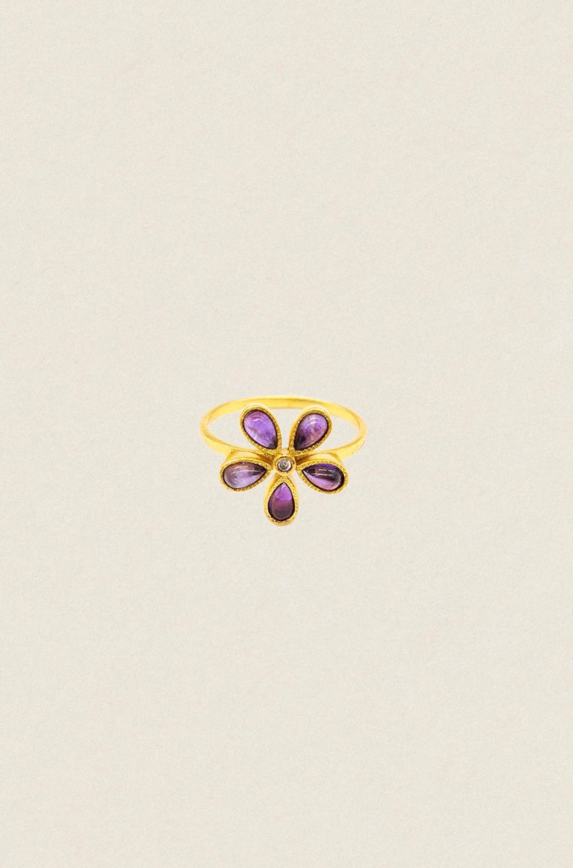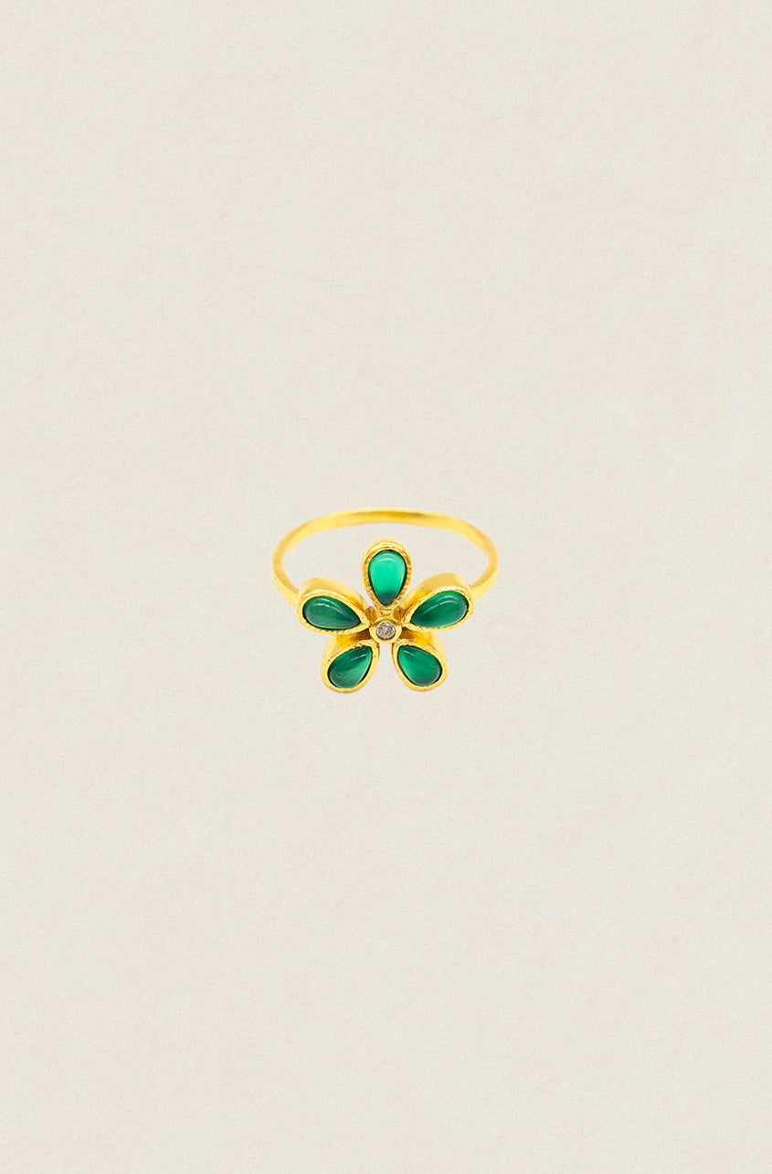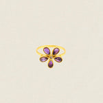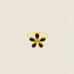 Gracias a su diseño fino y versátil, el Anillo Flor Pétalos Stone puede llevarse solo como toque sutil de luz o combinado con otros anillos dorados para un efecto más contemporáneo. Una pieza que florece con cada movimiento.