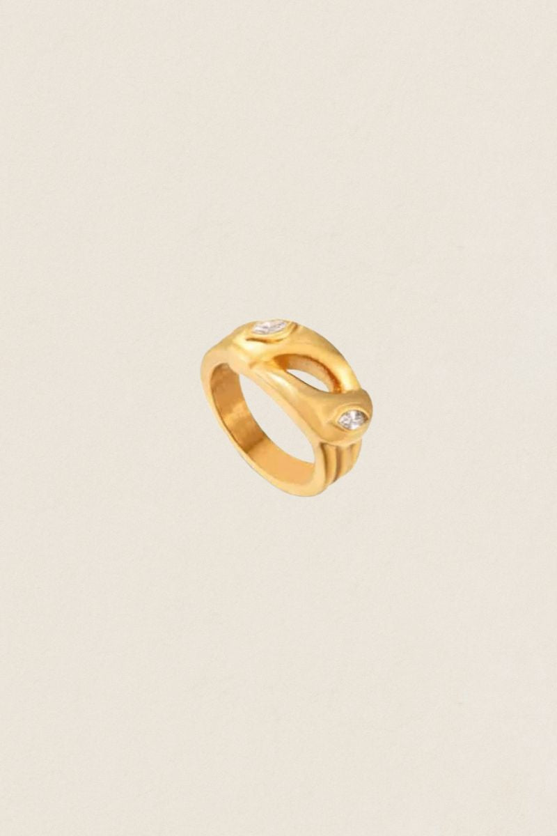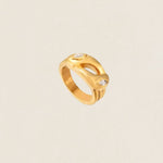 Para un estilo más versátil, combínalo con otros anillos dorados finos o pulseras minimalistas, creando un look equilibrado y elegante, perfecto tanto para el día a día como para ocasiones especiales.