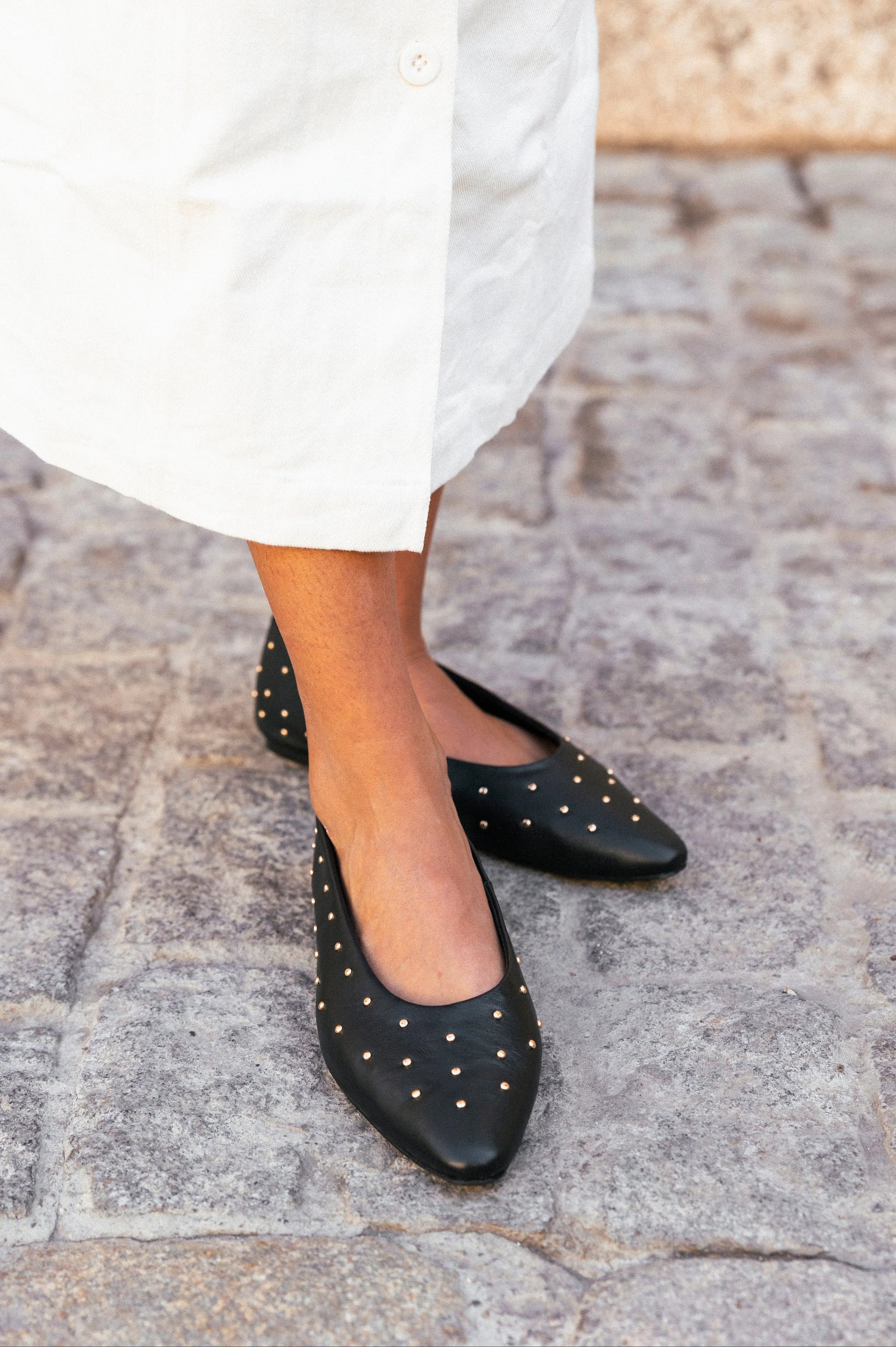 Estas bailarinas negras de piel combinan la elegancia atemporal con un toque moderno gracias a sus tachuelas decorativas.