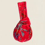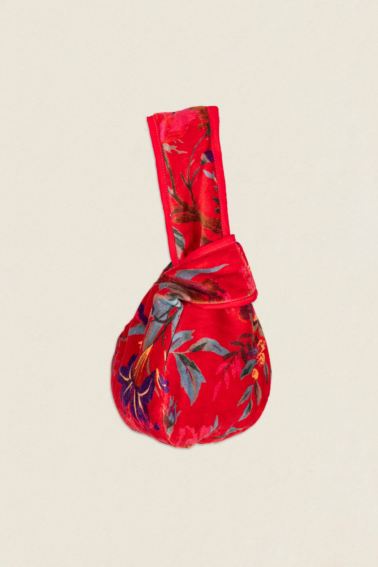 Este bolso de terciopelo con asa anudada es el accesorio perfecto para llevar como bolso de mano en bodas, fiestas y eventos especiales. Su diseño único y su acabado suave lo convierten en una pieza muy original con la que completar cualquier look de invitada.