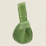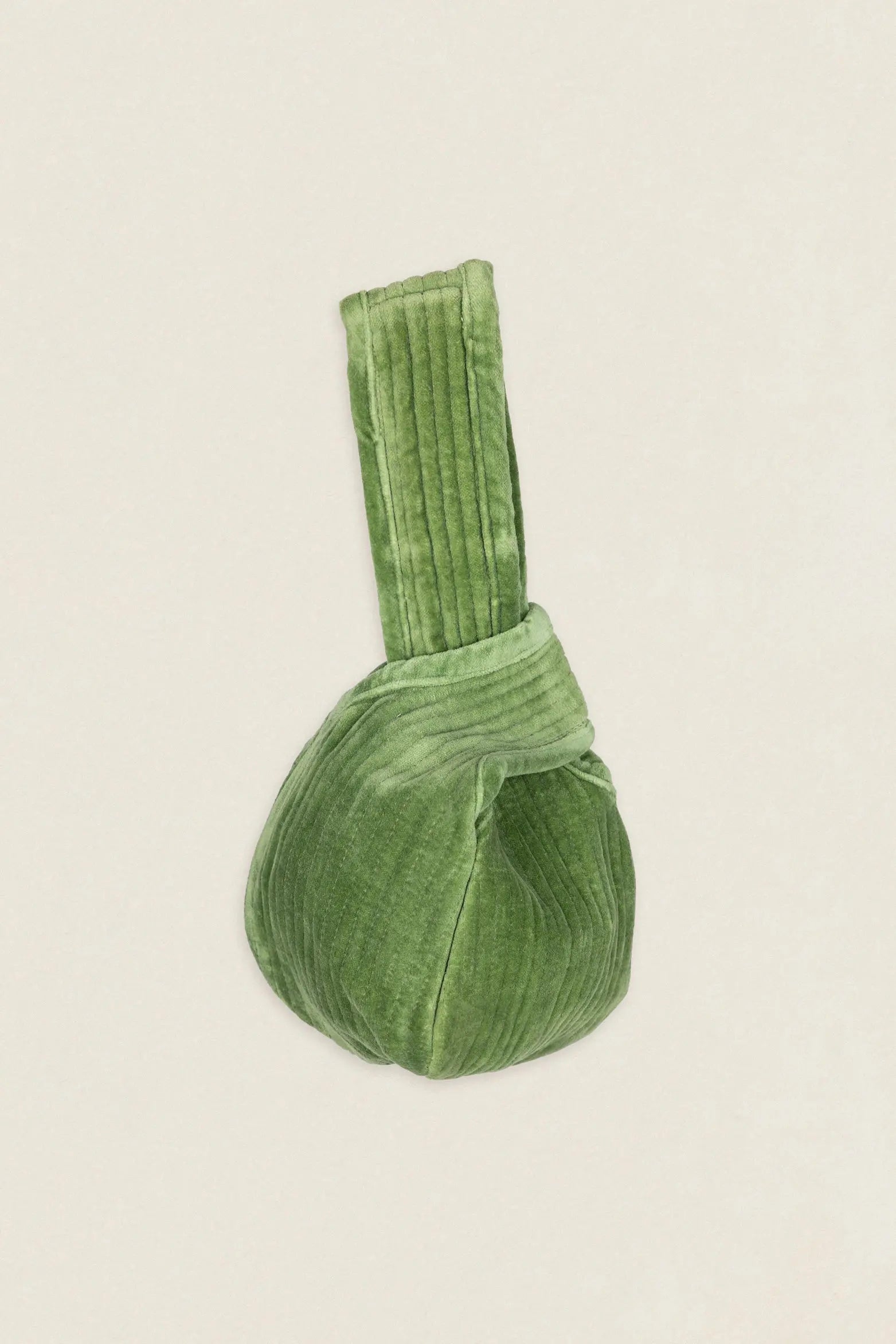 Bolso de terciopelo con asa anudada para llevar como bolso de mano.