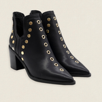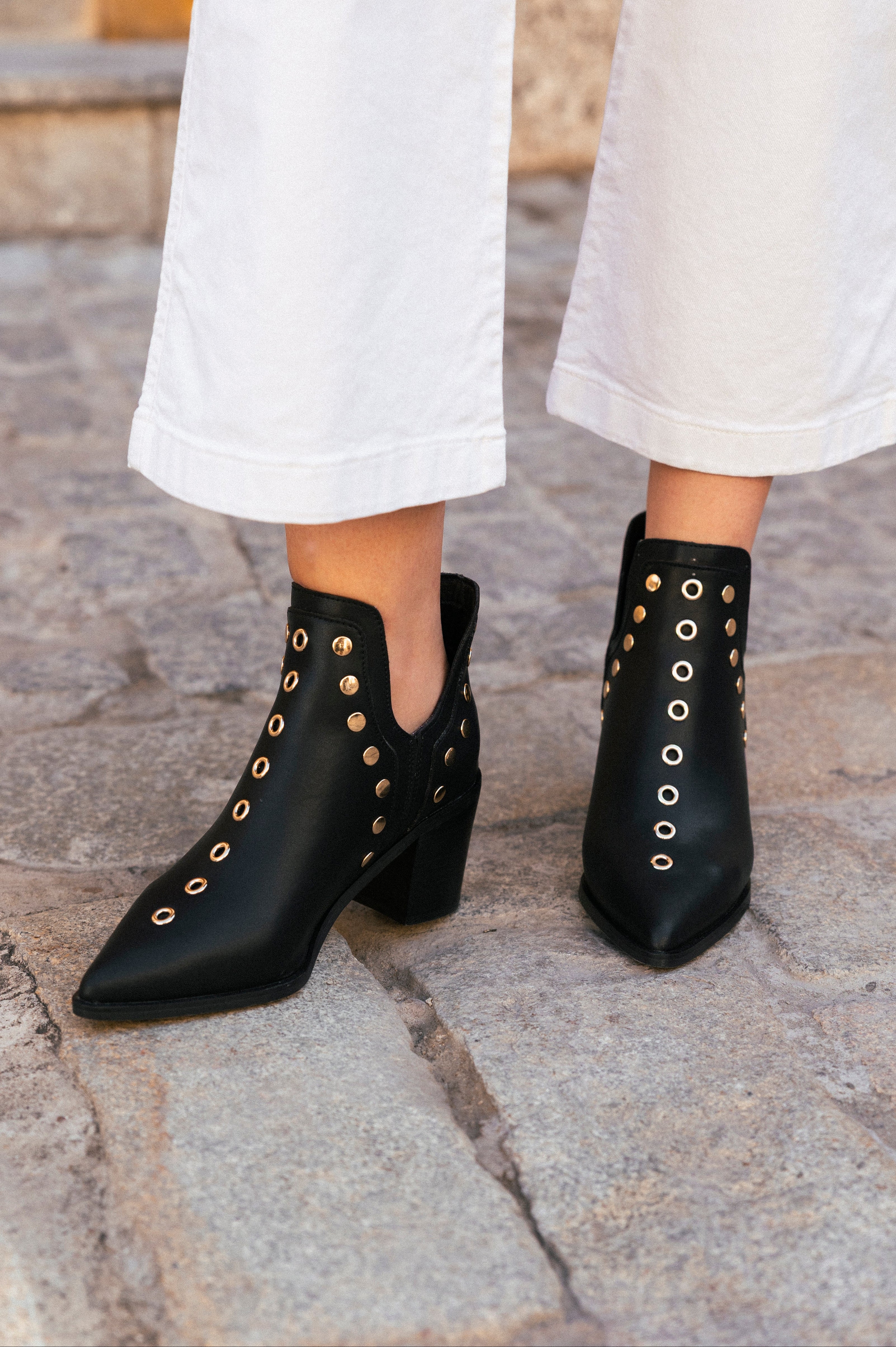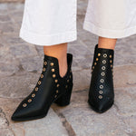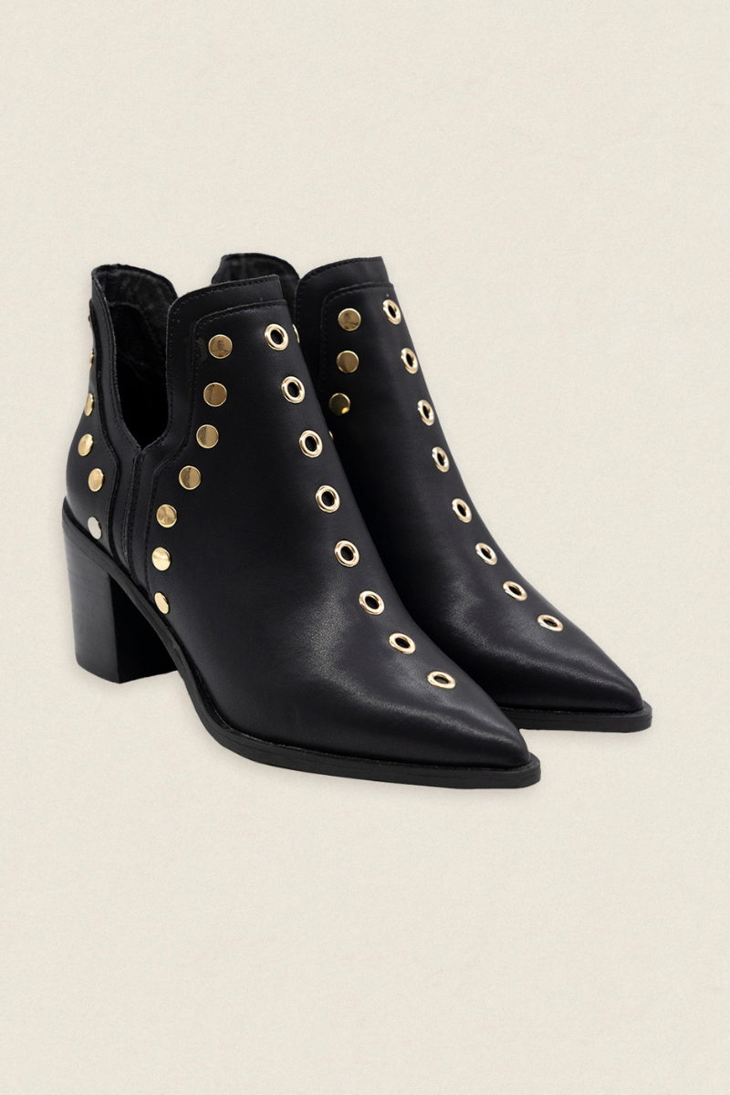 Botas Mer Tacón Alto Piel Negro Tachuela Dorada