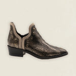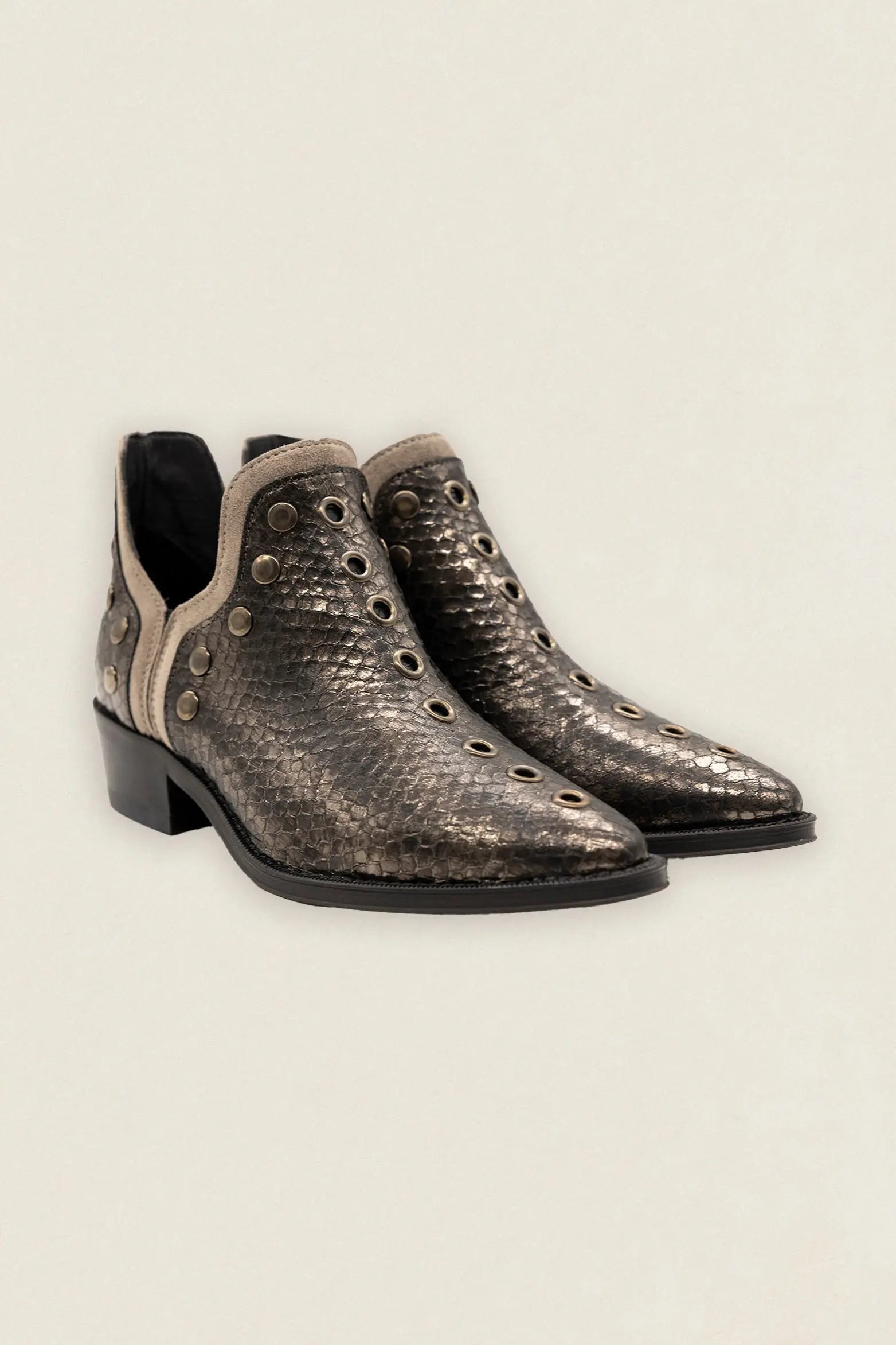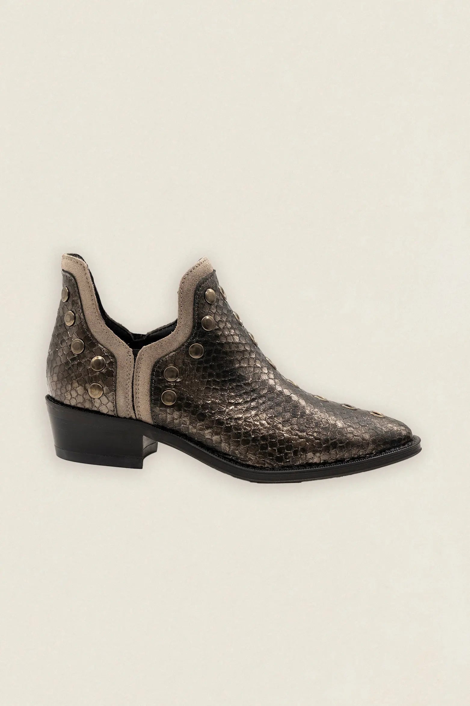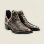 Botas Mer Tacón Bajo Snake Piel Antracita Tachuela Plateada