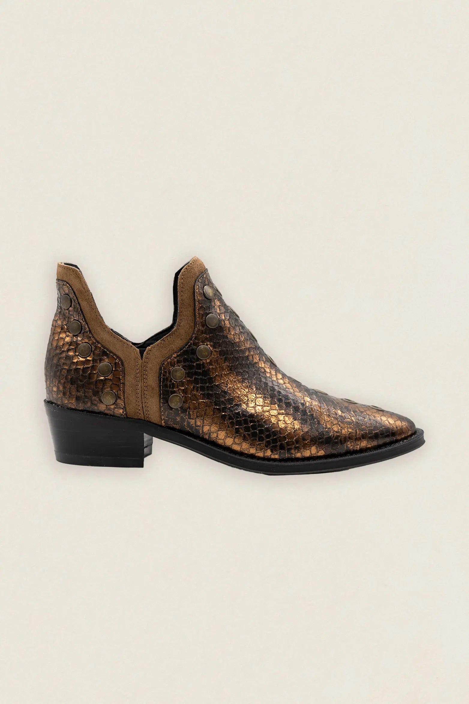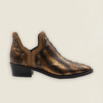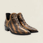 Botas Mer Tacón Bajo Snake Piel Bronce Tachuela Dorada