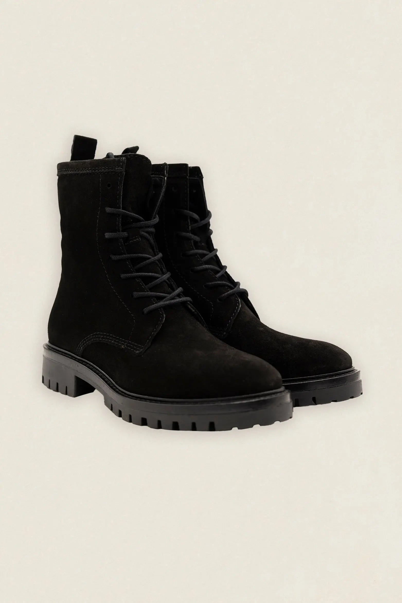 Estas botas de ante destacan por su diseño único con cordones, que aportan un aire moderno y desenfadado.