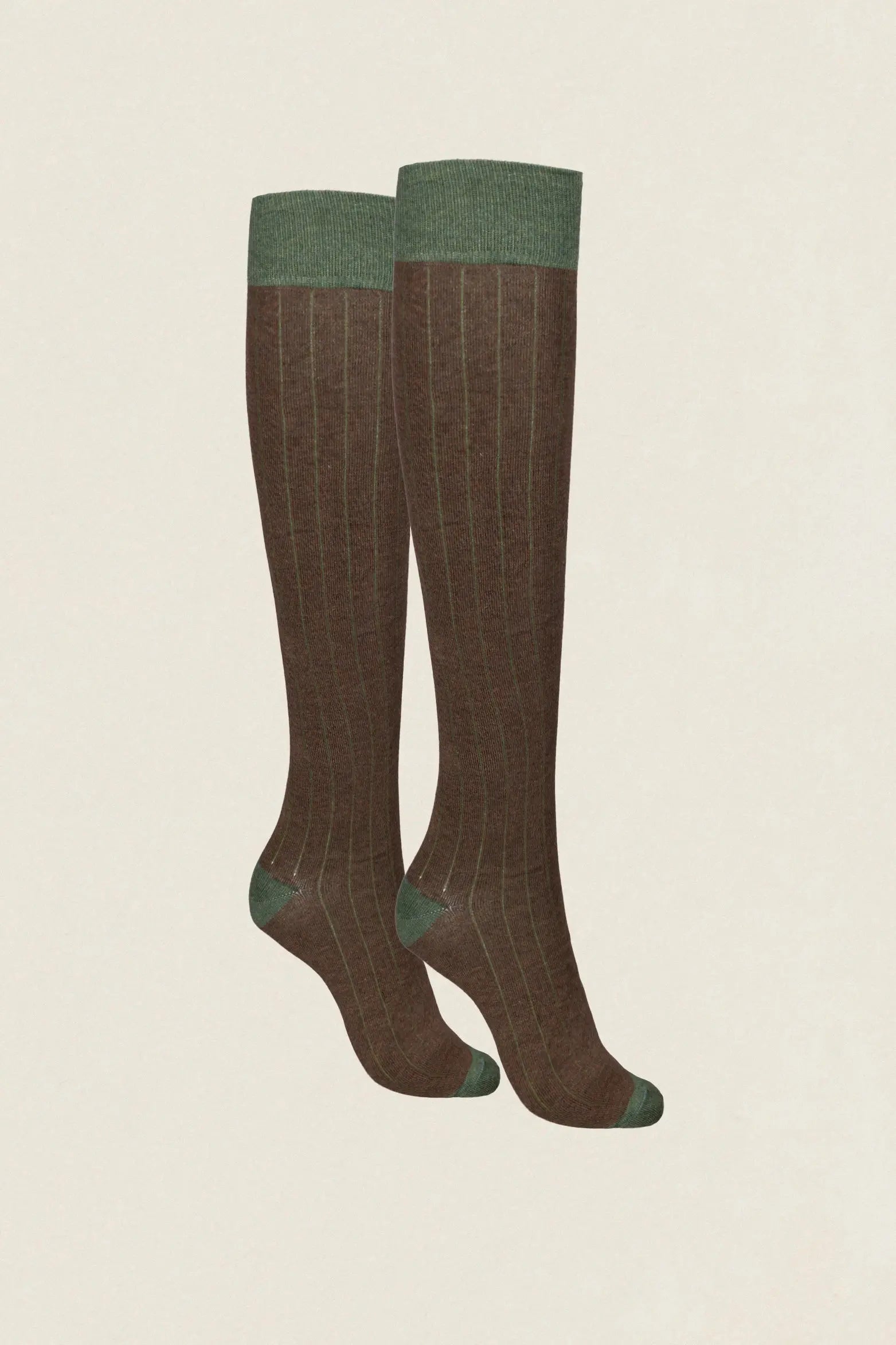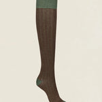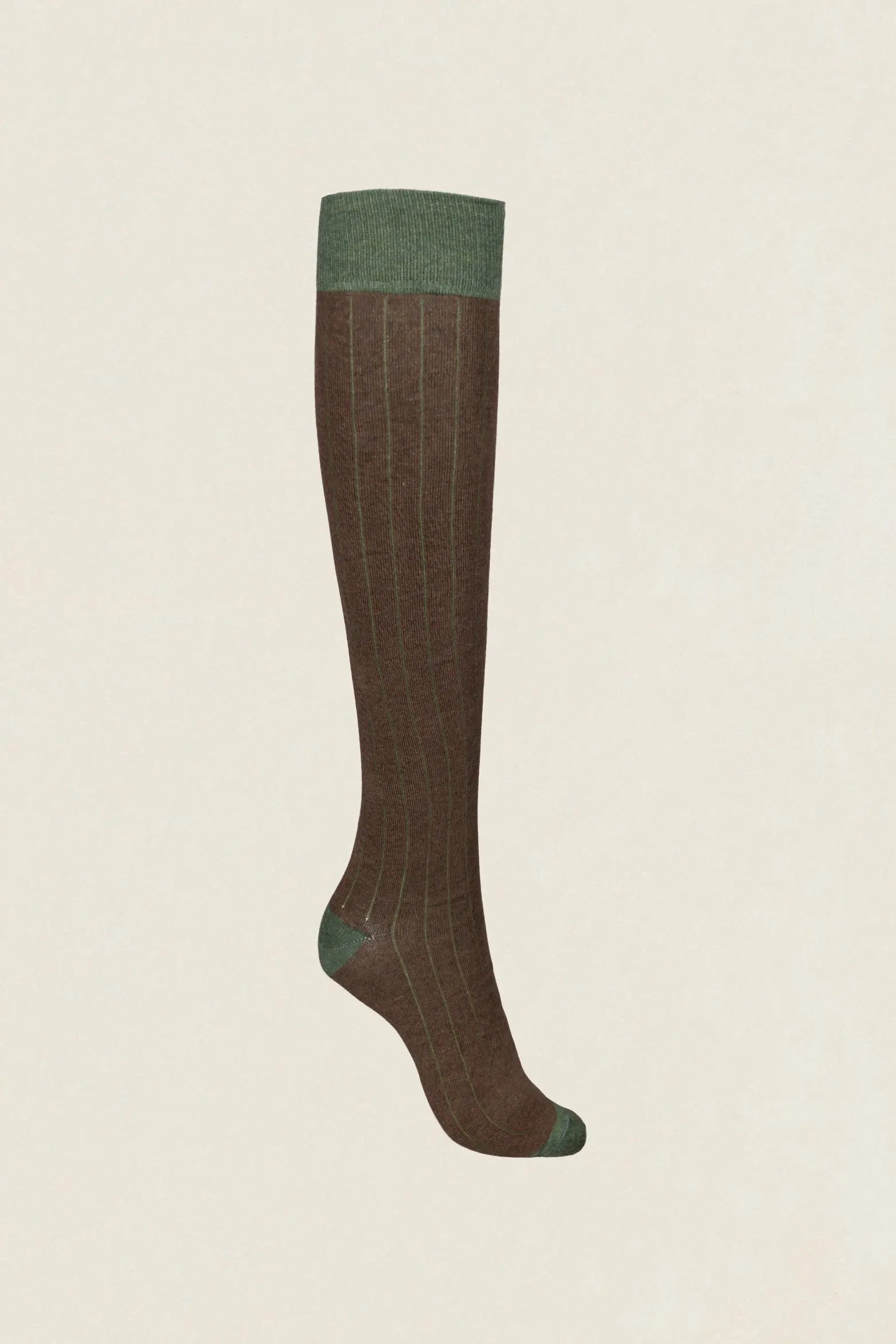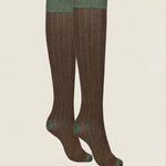 Calcetín de algodón peinado de caña alta bicolor. La abertura del canalé, la puntera, el talón y la faja son del mismo color. Compuestos por un 83% de algodón son muy cómodos, se adaptan a tu pierna y no se caen ni hacen arrugas.
