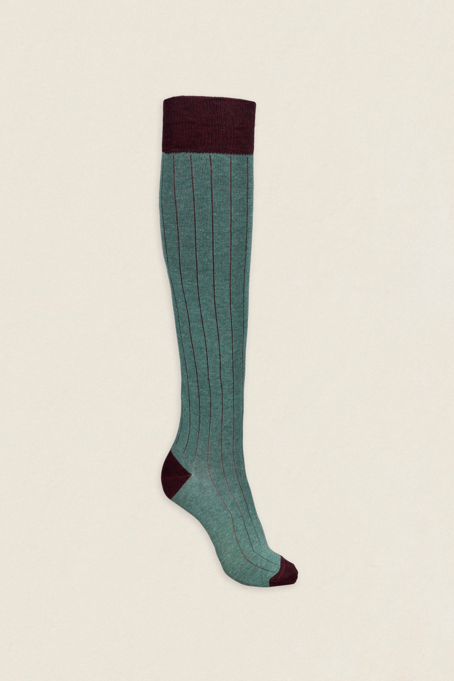 Calcetin caña alta L76 bicolor Verde campo - Burdeos
