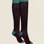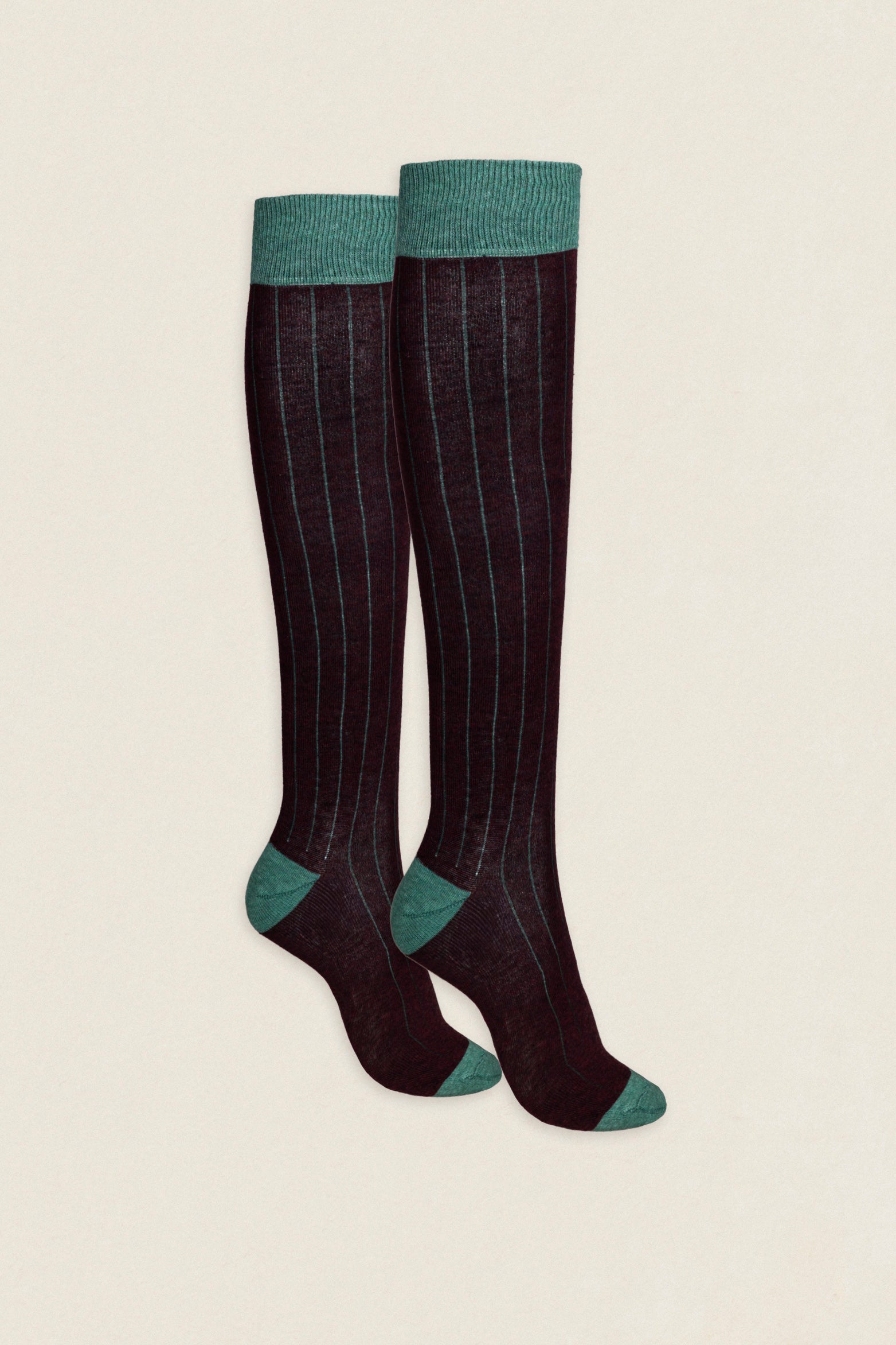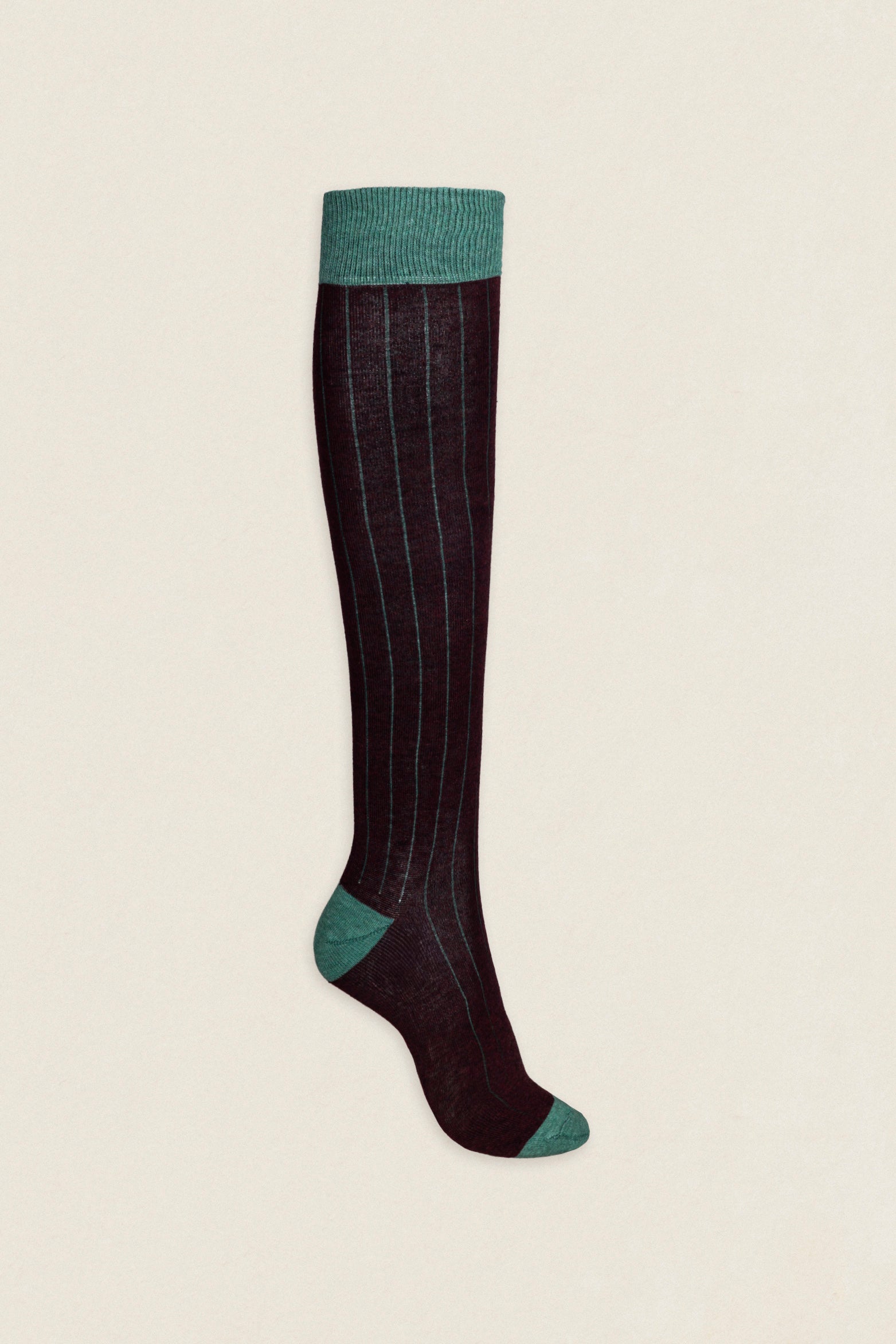 Calcetin caña alta L82 bicolor Burdeos - Verde campo
