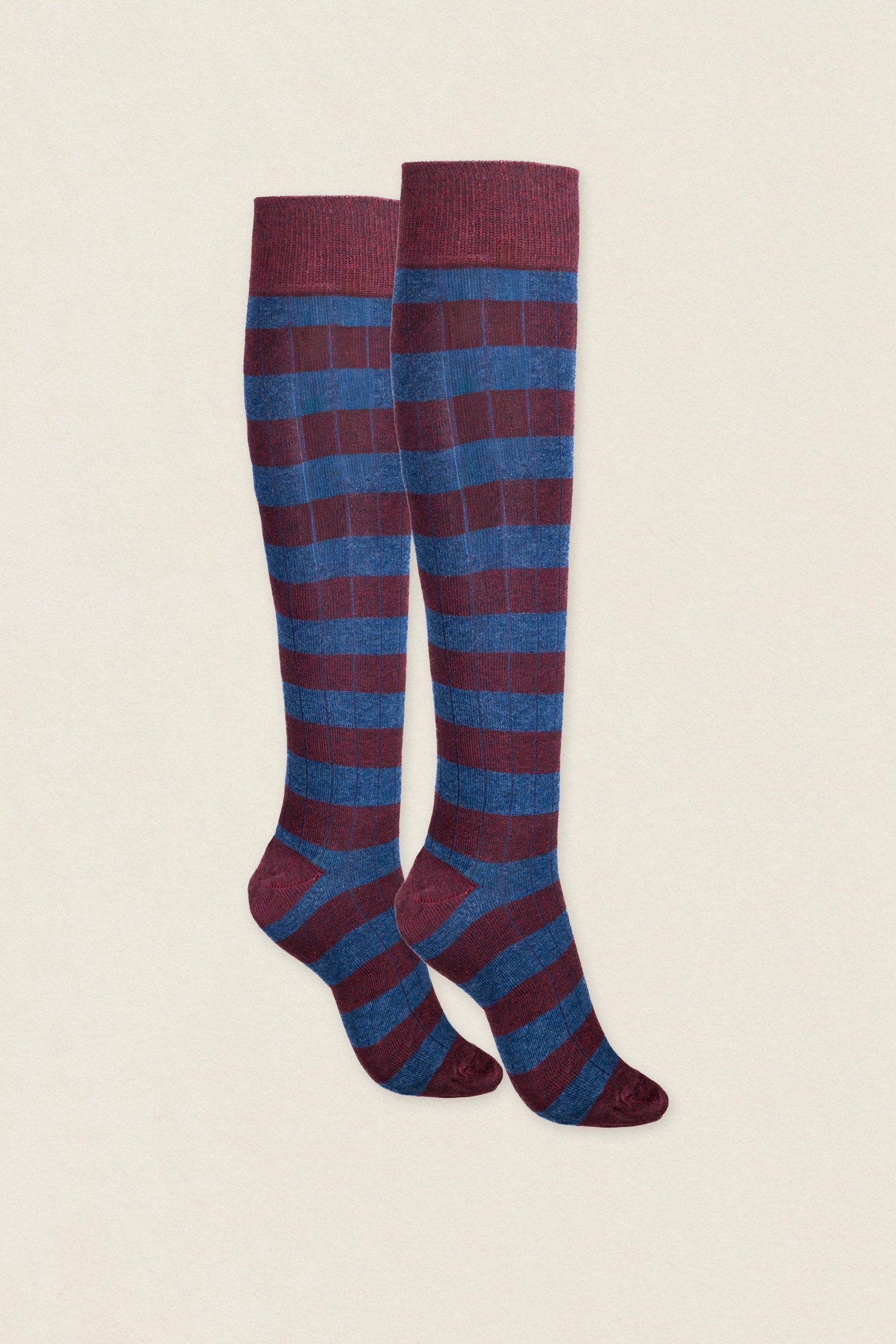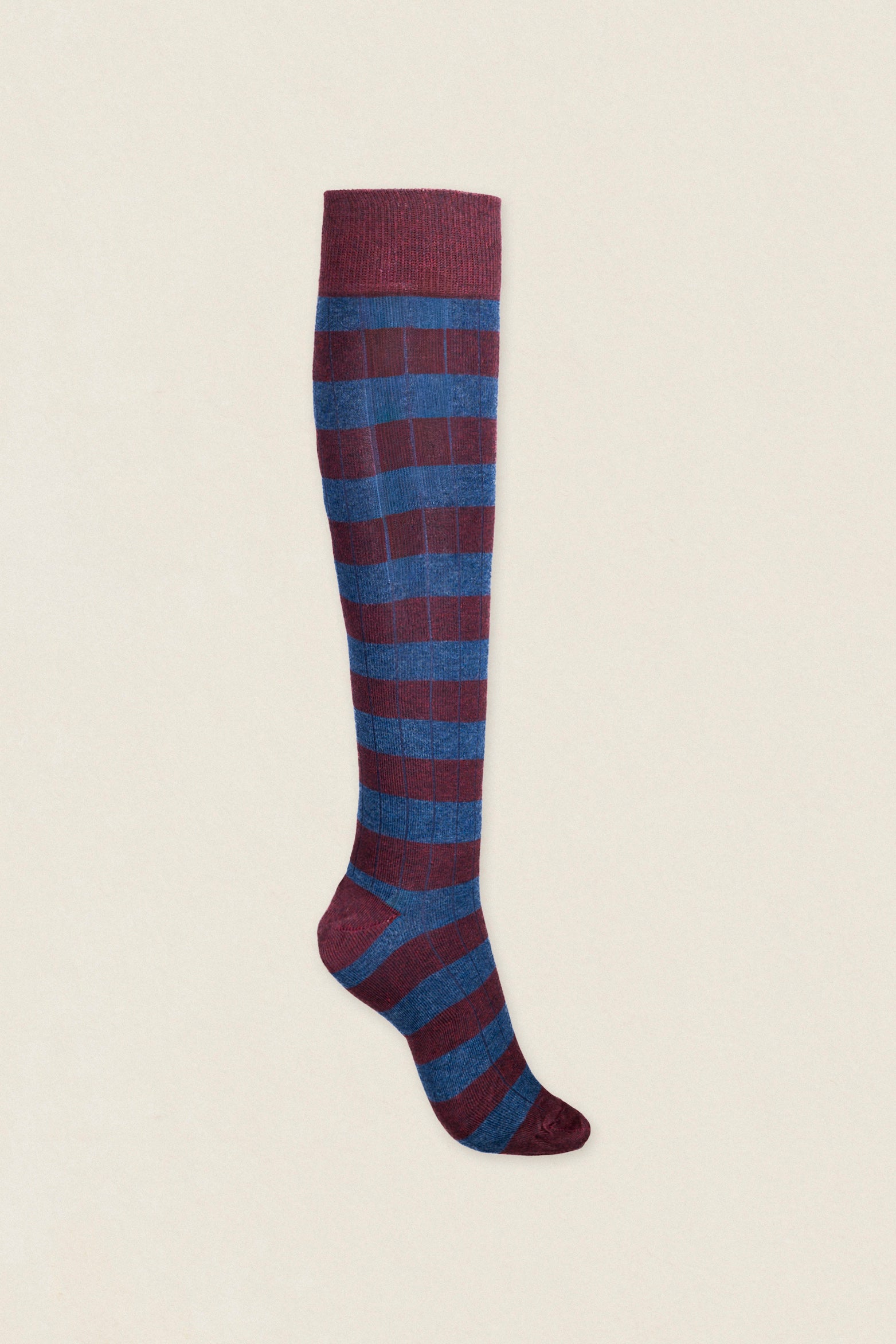 Calcetin caña alta R41 Rayas Granate Oscuro- Marino