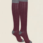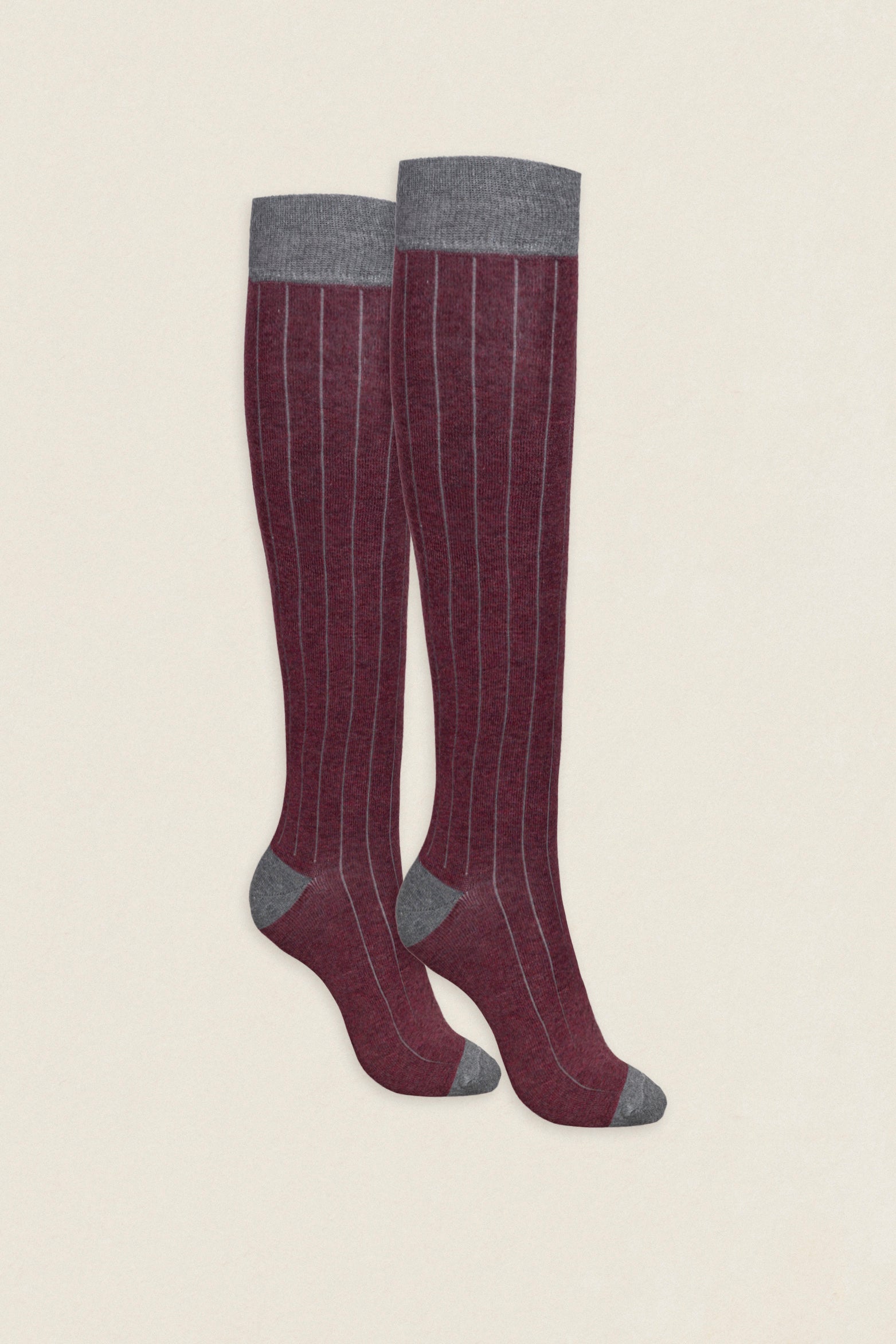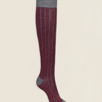 Calcetín de algodón peinado de caña alta bicolor. La abertura del canalé, la puntera, el talón y la faja son del mismo color. Compuestos por un 83% de algodón son muy cómodos, se adaptan a tu pierna y no se caen ni hacen arrugas.