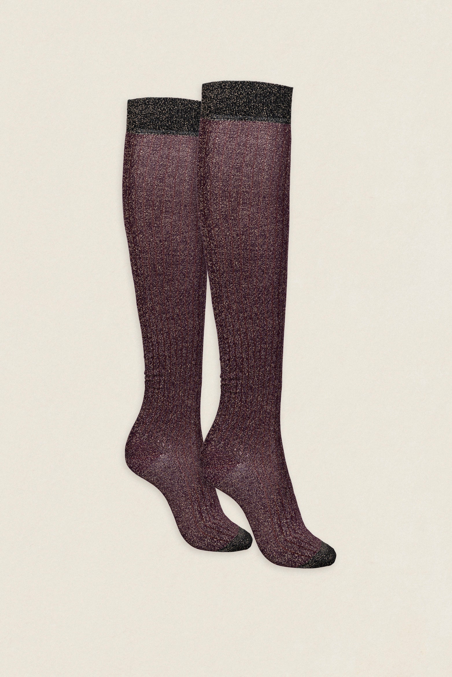 Calcetin purpurina caña alta PCA18 Granate con Dorado