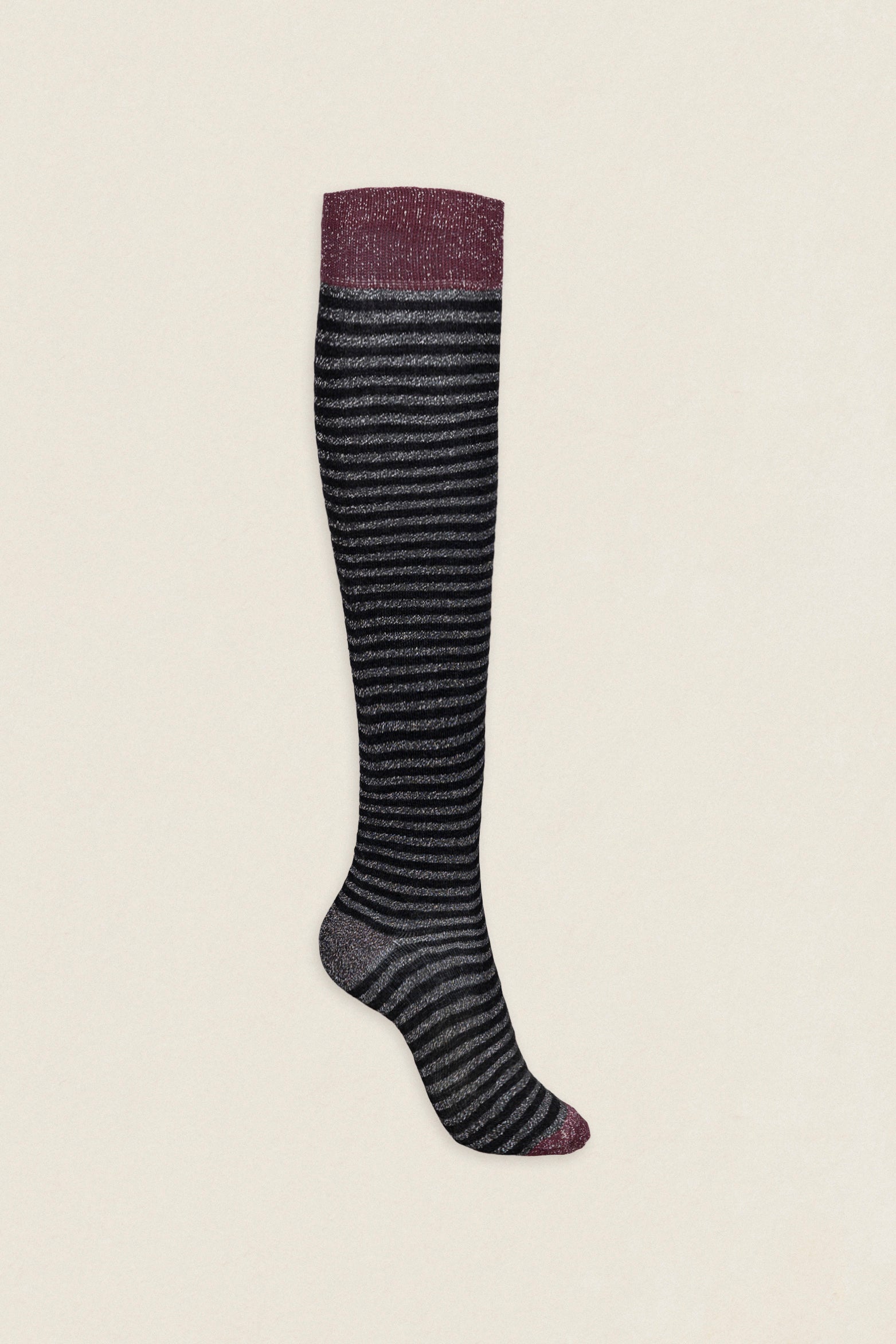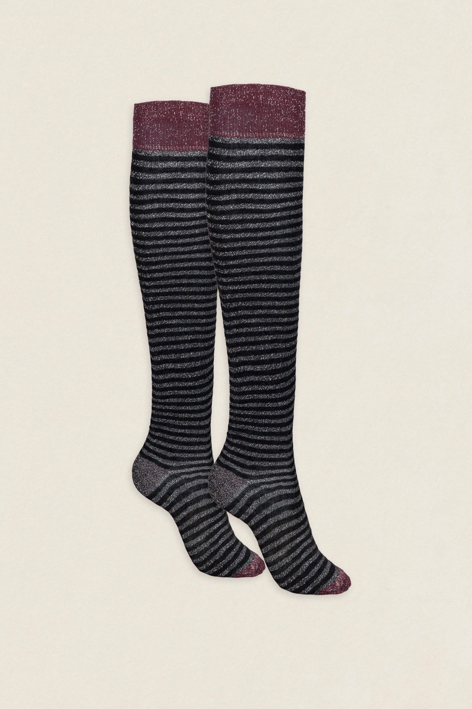 Calcetin purpurina caña alta PCAR14 rayas Negro - Antracita