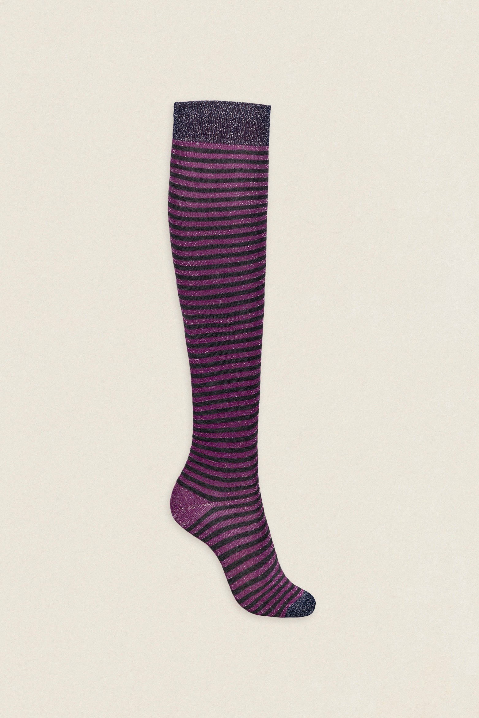 Calcetin purpurina caña alta PCAR15 rayas Antracita - Buganvilla