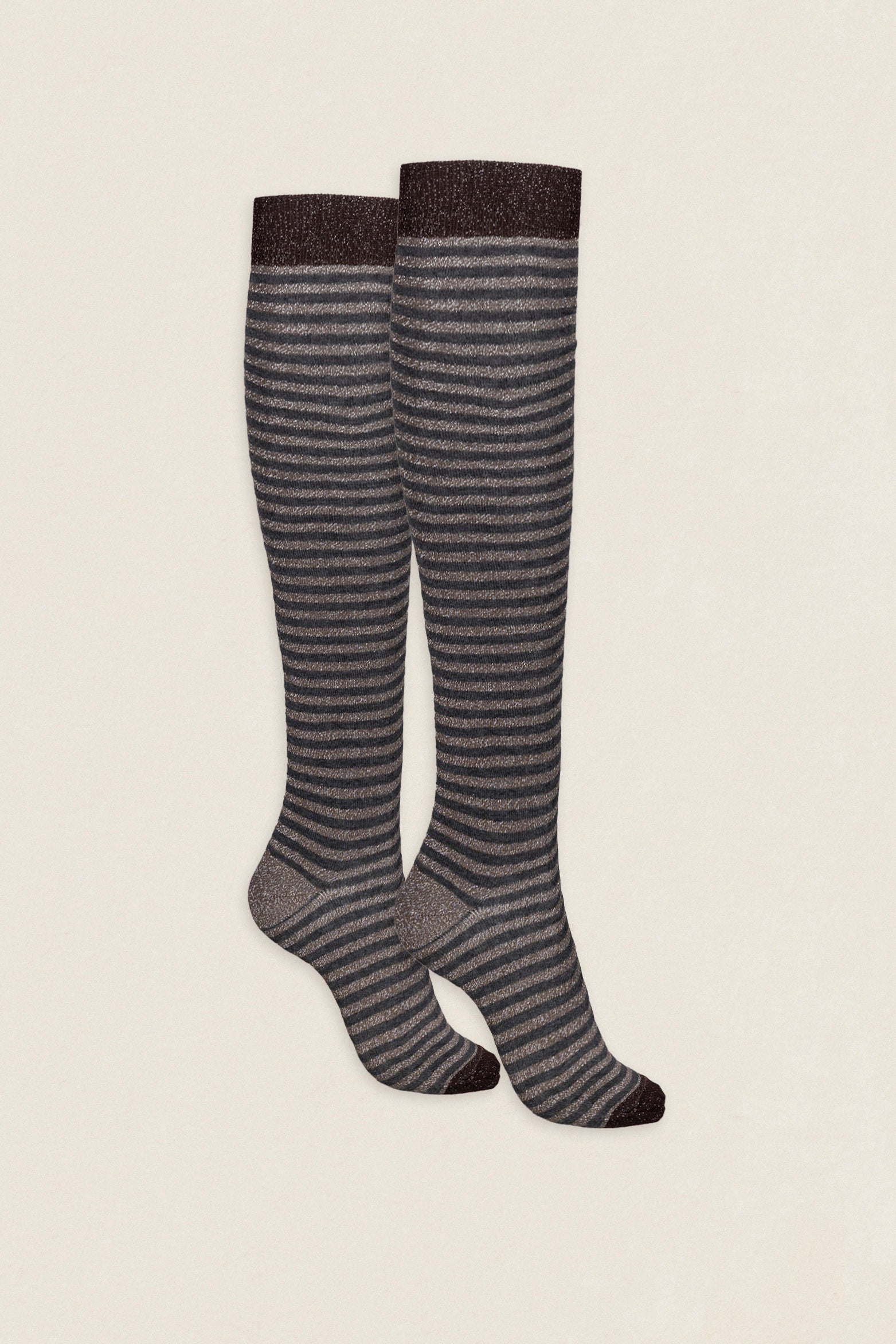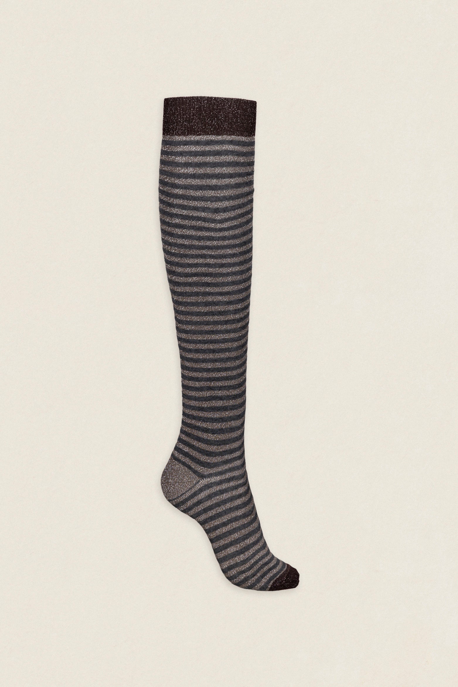 Calcetin purpurina caña alta PCAR19 rayas Antracita - Tostado